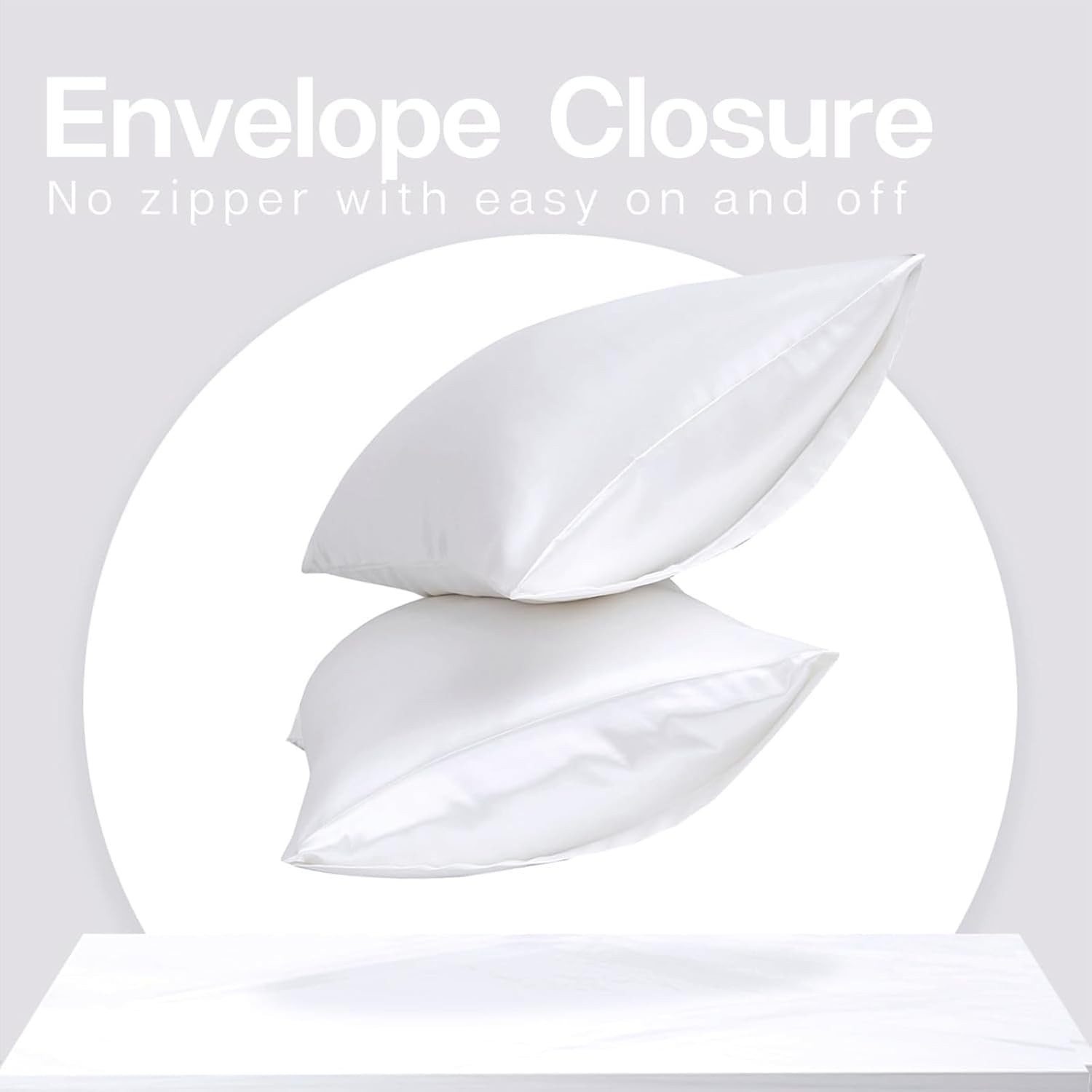 MR&HM Satin Pillowcase for Hair and Skin, Silk Satin Pillowcase 2 Pack, King Size Pillow Cases Set of 2, Silky Pillow Cover with Envelope Closure (20x40, White)
