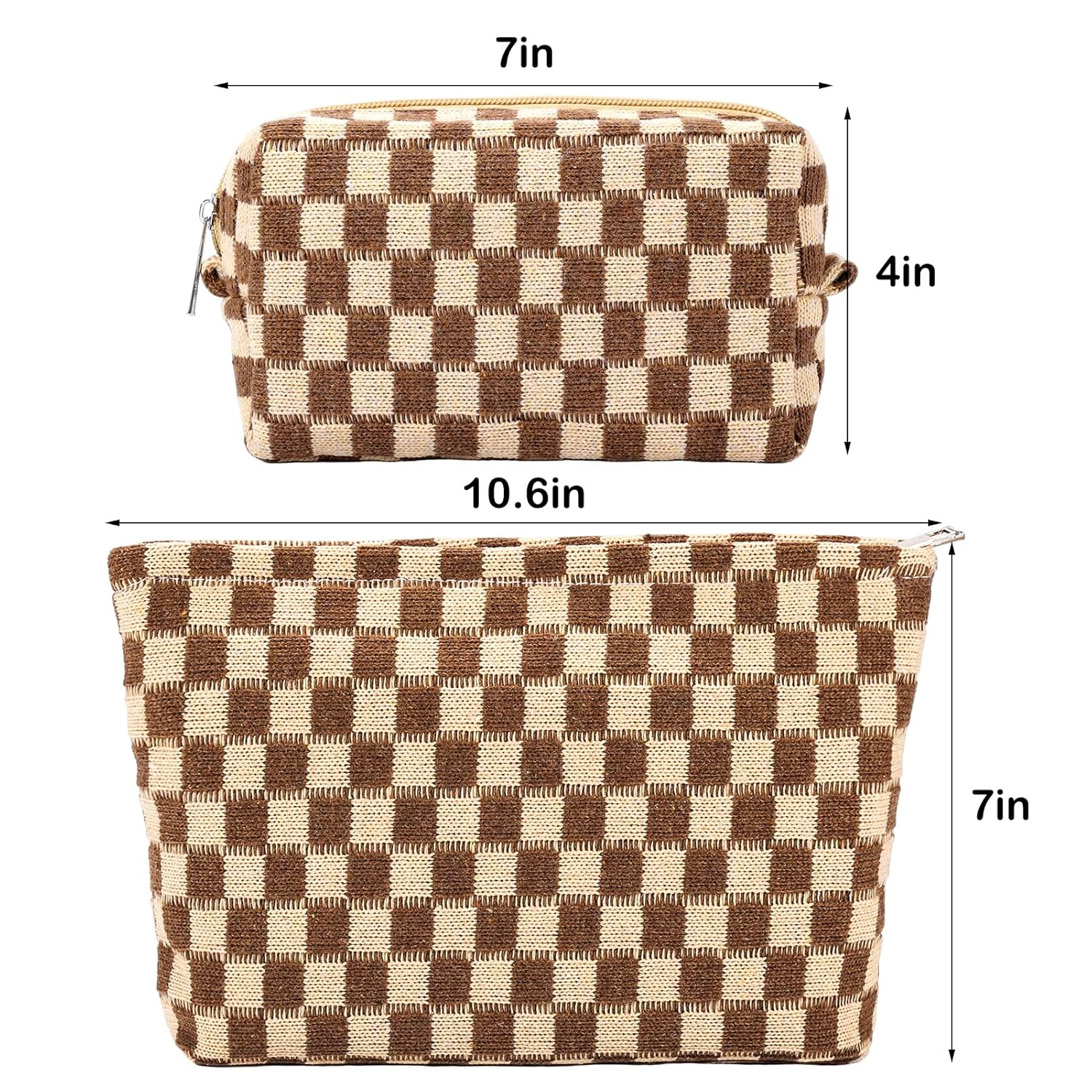 - LARGE CAPACITY AND PREMIUM MATERIAL: The cute makeup bag measure 10.6×7 inches and 7×4 inches, easy to carry. The checkered makeup bag is made of soft knitted fabric, easy to clean. The smaller ones can be used as pencil case or pencil pouch. This makeup travel bag can also hold small items such as makeup, skincare products, lipstick, eye shadow, eyebrow brush, etc. Makeup storage bag for women toiletries