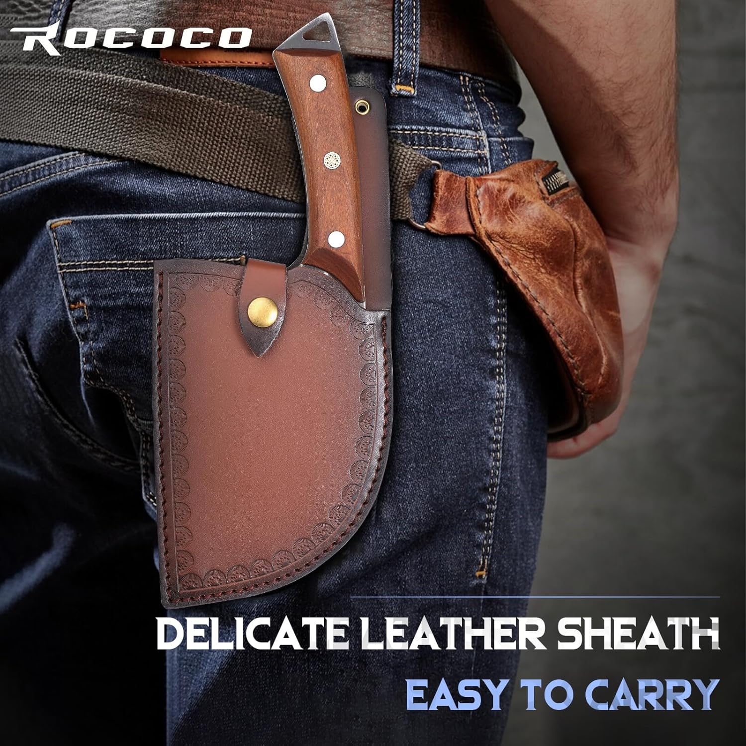 ROCOCO Serbian Chef Knife Butcher Cleaver Knife with Sheath for Kitchen Outdoor BBQ Camping Birthday Father Mother Christmas Gift Men 6.2"