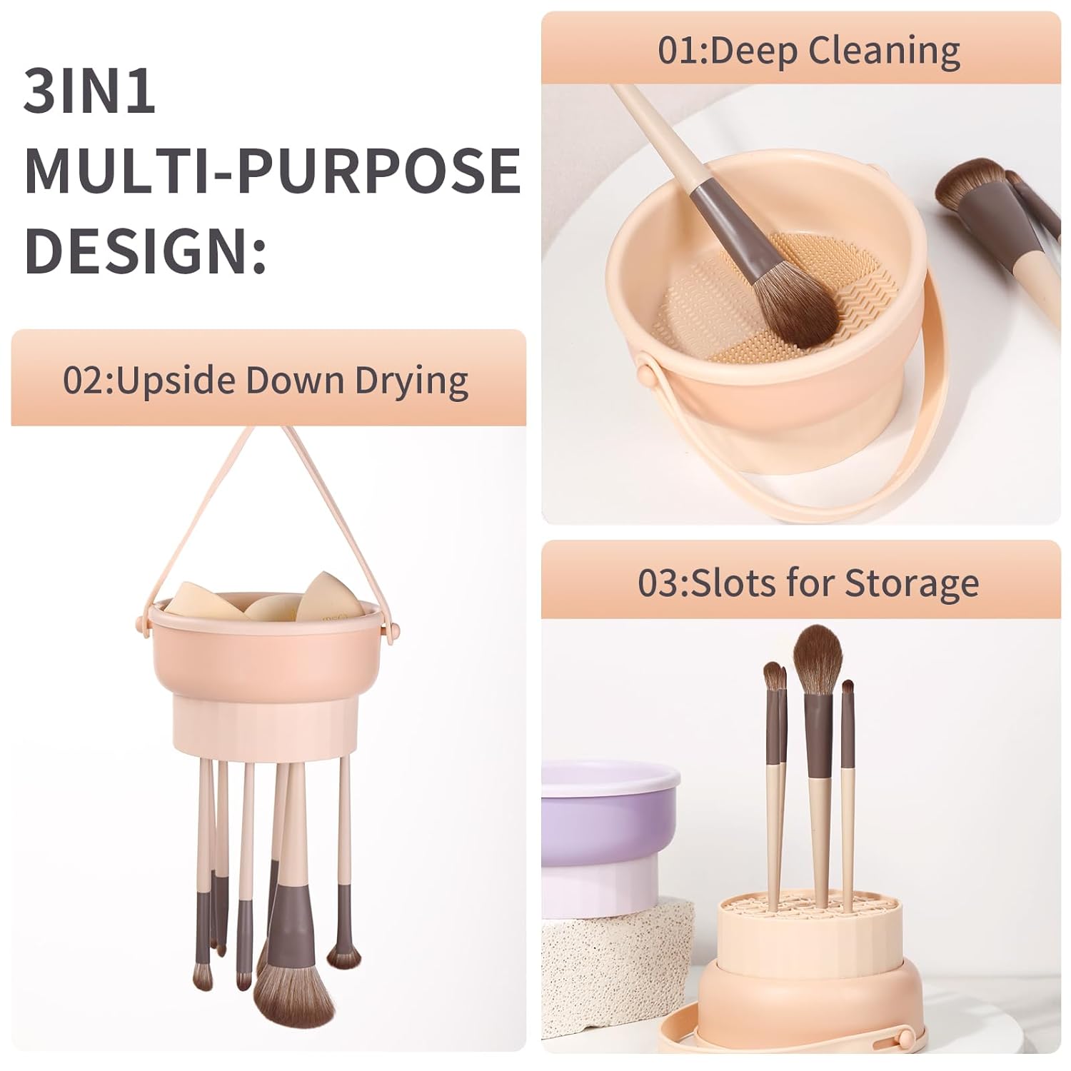 - 【3-in-1 Design】Our Makeup Brush Cleaner Bowl adopts a 3-in-1 design, which integrates cleaning, drying and storage. The depth of the makeup brush cleaning box is enough to meet your cleaning needs. The bottom hole can be used to dry makeup brushes, or upside down as a makeup brush holder to meet your storage needs.