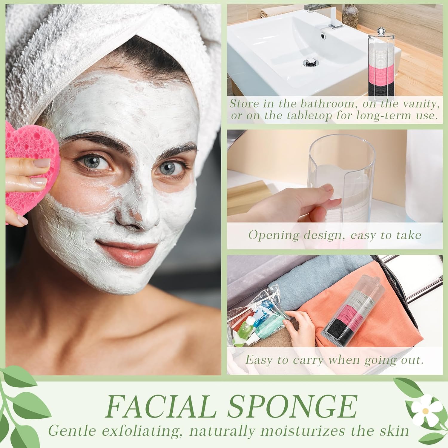 - Sufficient Quantity and Proper Size: you will receive 120 pieces of heart shape compressed facial sponges with 1 piece of acrylic storage container, each sponge pad measures approx 6.3 cm/ 2.48 inches in width, and can become 0.8 cm/ 0.32 inch thick after absorbing water, and the container is about 7 cm/ 2.75 inch in diameter and 20 cm/ 7.87 inch in height; Sufficient to meet your daily facial cleaning use and placement needs, you can also share them with your friends and family members