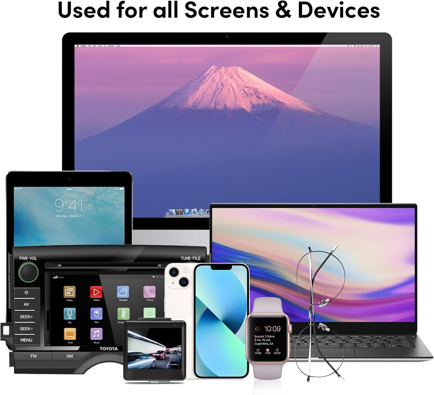 - Wide use: using for all Phones/Glasses/Pad/Car/LCD/LED/Laptop/Indicator/Watch screen etc. Fingerprint-proof Screen Cleaner can be washed and dried for repeated use.
