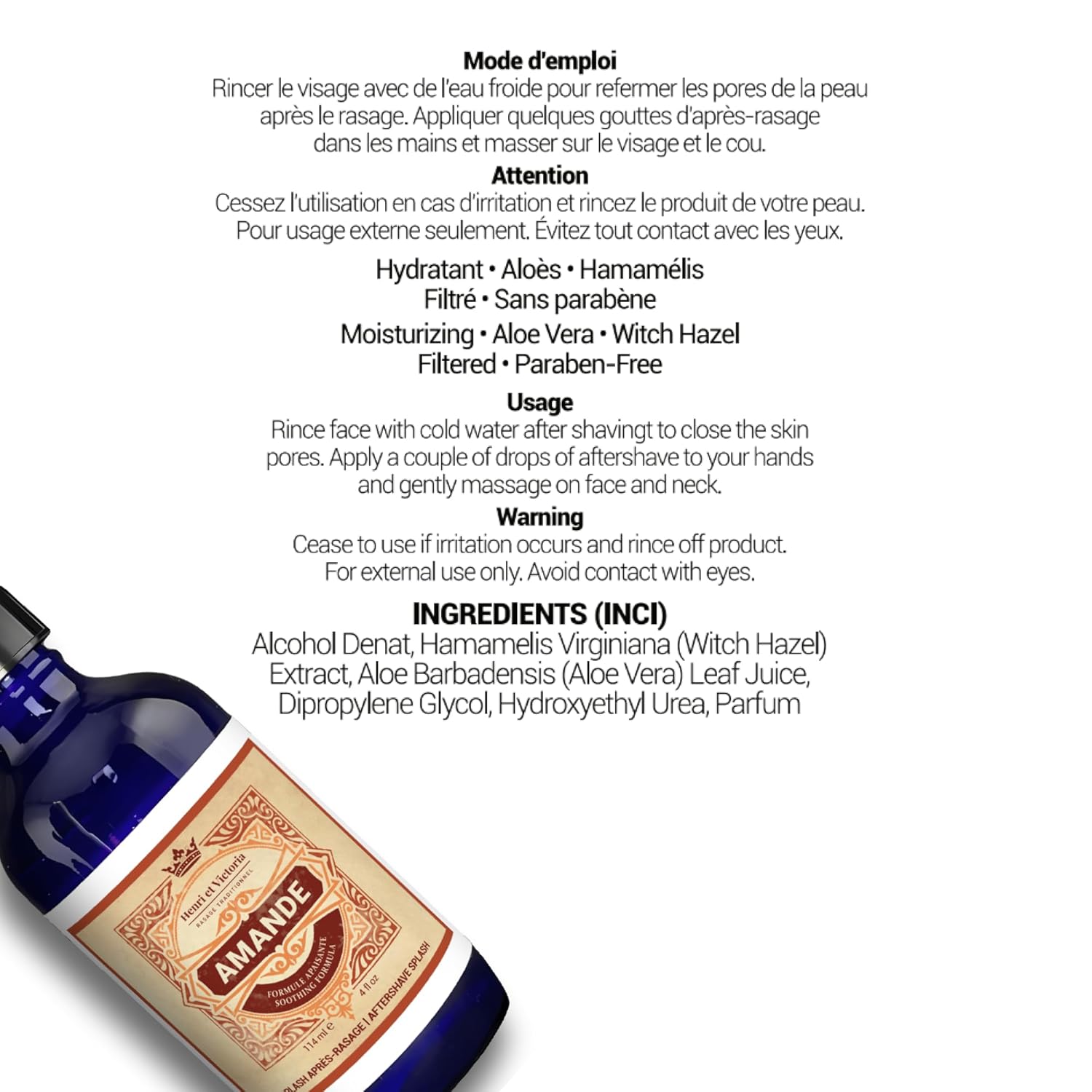 Aftershave Splash For Men l Amande Fragrance l Canadian Made by A Skilled Artisan l Moisturizes & Soothes the Skin | 114 ml (4 oz)