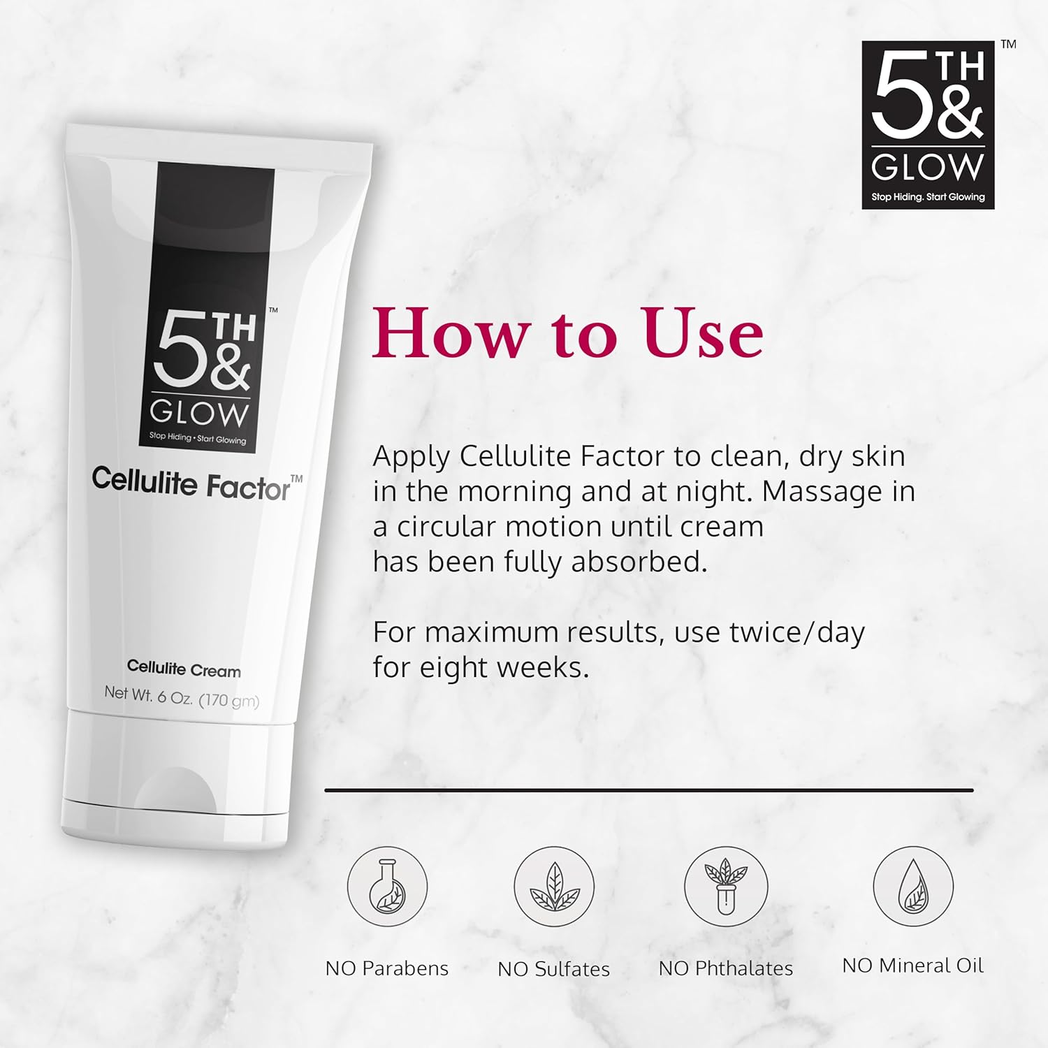 - Easy Application: Apply Cellulite Factor to clean, dry skin in the morning and at night. Massage in a circular motion until the cream has been fully absorbed. For maximum results, we recommend you use twice/day for eight weeks