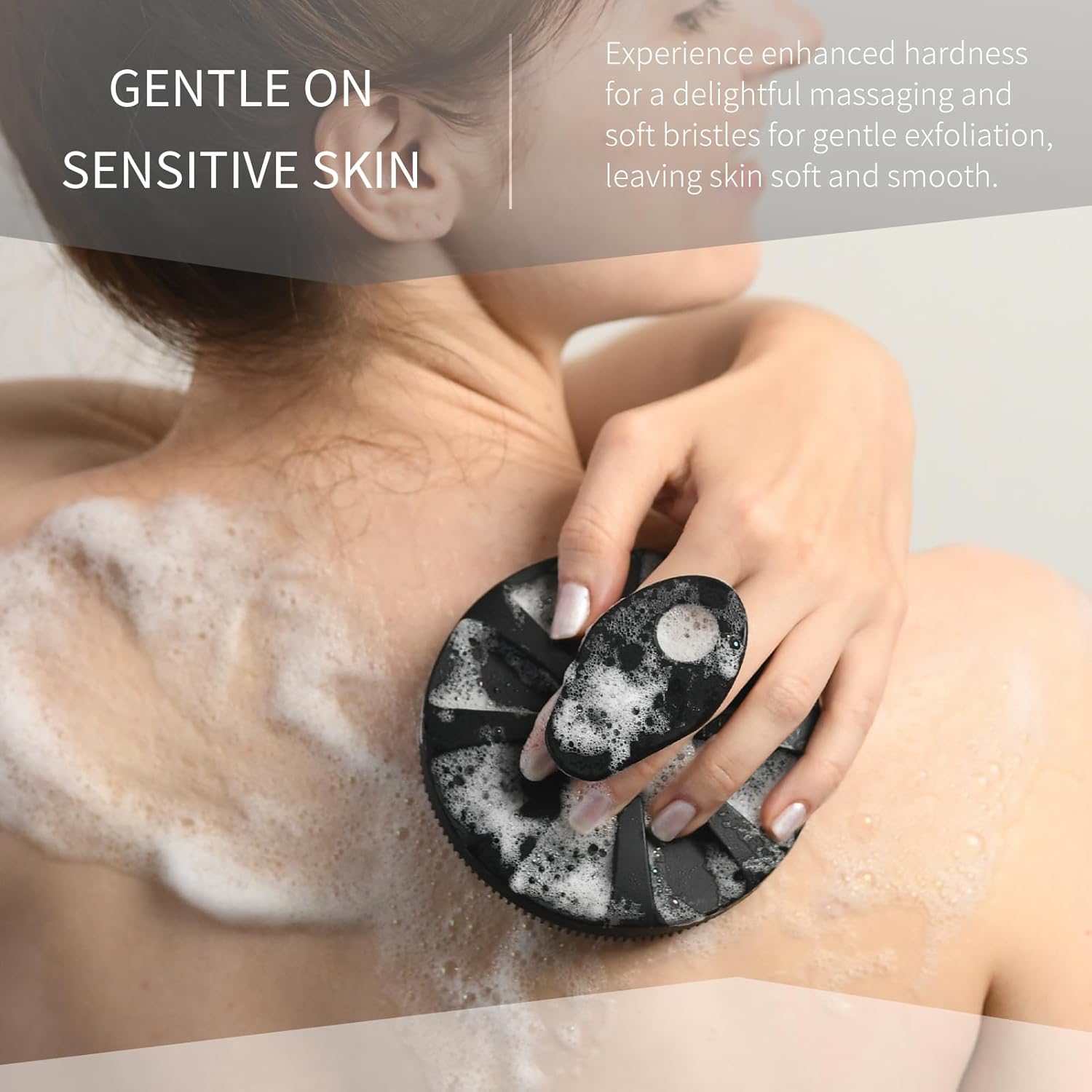Silicone Body Scrubber, Upgrade 3rd Gen Shower Bath Brush, Lather Nicely, Soft Massage Body, More Hygienic Than Traditional Loofah, Gentle Exfoliating for Sensitive Skin, 1 Pack, Black