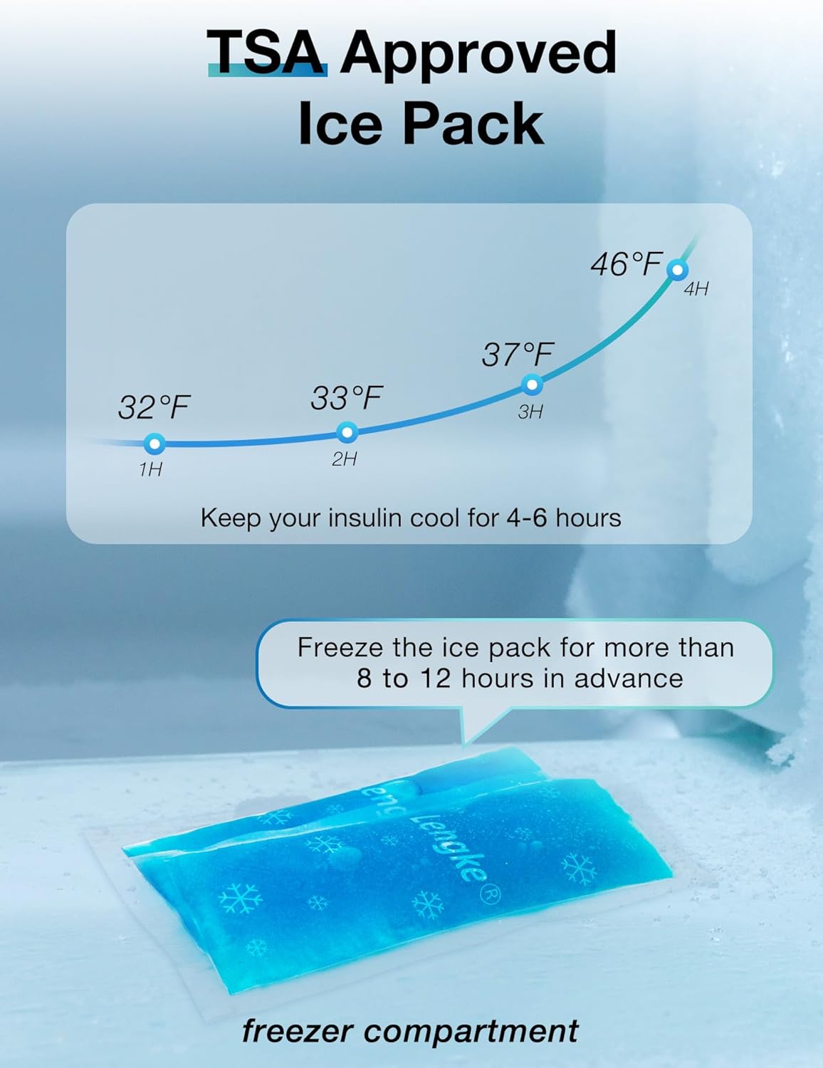 - TSA Approved Ice Packs β Keep Medication Cool On the Go - Equipped with 2 eco-friendly reusable Insulin ice packs, this TSA-approved insulin cooler travel case is perfect for travel. Simply freeze the gel ice packs for 8-12 hours before use, and keep your insulin cool on the go. Ideal for travel ice packs for medications.