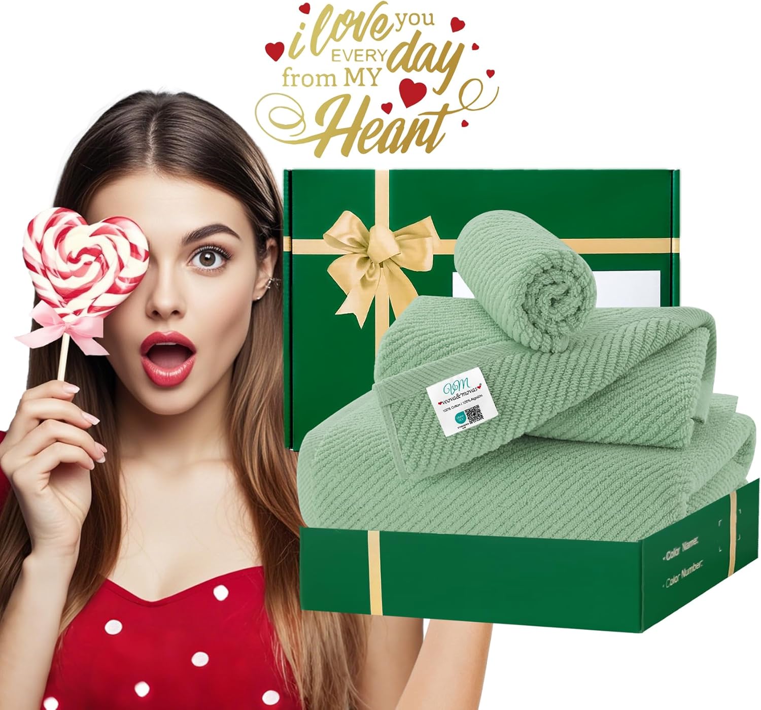 VOOVA & MOVAS Green Towels for Bathroom, 100% Cotton | Quick Dry | Soft | Thick, 3 Piece Towel Set, 1 Large Bath 30" x 56", 1 Hand 18" x 28", 1 Wash Cloth 13" x 13", Bathroom Essentials, Sage Green