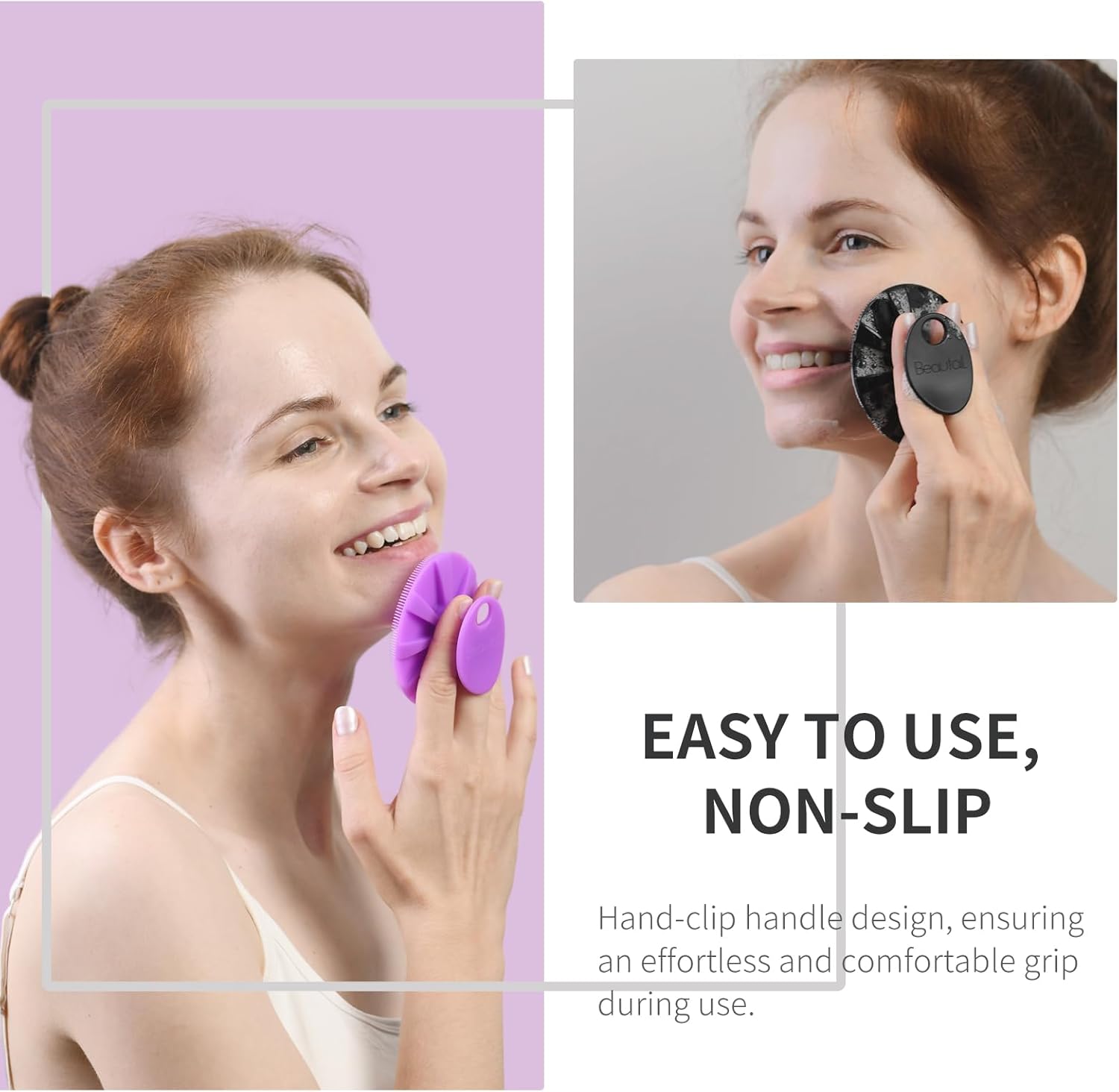 Silicone Face Scrubber 2 Pack, Manual Facial Cleansing Brush, Gentle Face Exfoliator for Sensitive Skin, Skin Care Exfoliating Face Brush for Men and Women, Black+Purple
