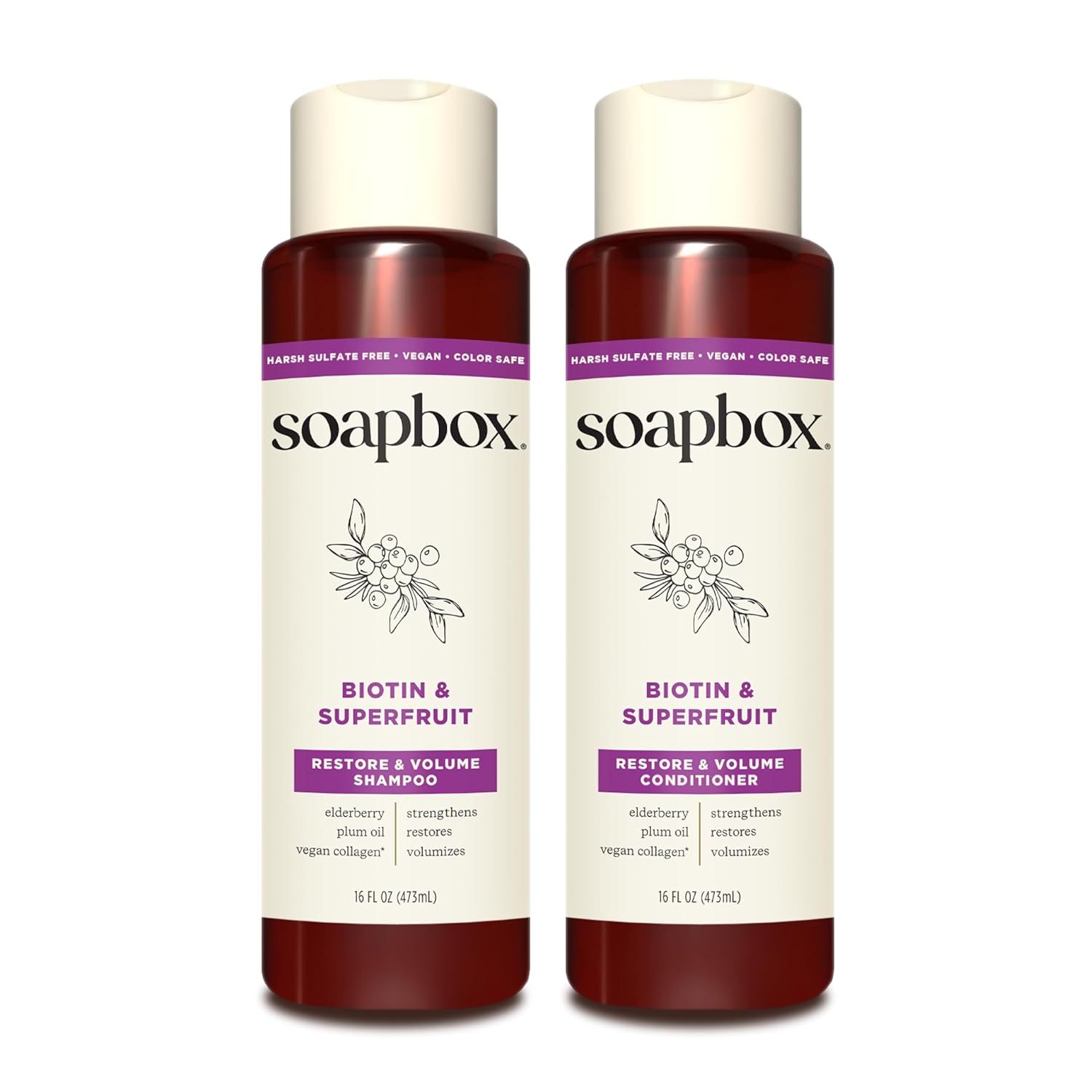 Soapbox Biotin & Superfruit Shampoo & Conditioner Set with Vegan Collagen, Aloe and Shea Butter, Pack of 2 Harsh Sulfate Free, Paraben & Silicone Free, 16 Ounces Each