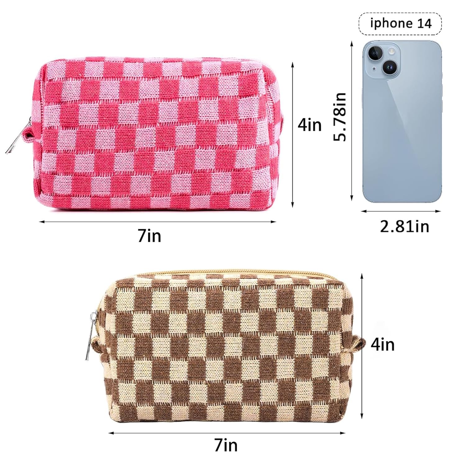 - LARGE CAPACITY AND PREMIUM MATERIAL: The cute makeup bag measure 7.1Γ4.3 inches, easy to carry. The checkered makeup bag is made of soft knitted fabric, easy to clean. The smaller ones can be used as pencil case or pencil pouch.This makeup travel bag can also hold small items such as makeup, skincare products, lipstick, eye shadow, eyebrow brush, etc. Makeup storage bag for women toiletries