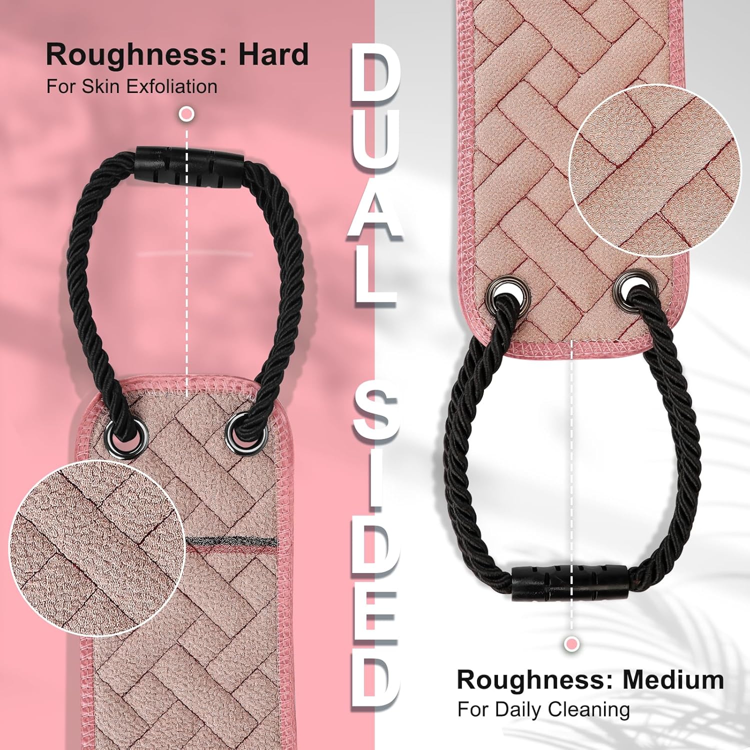 Exfoliating Back Scrubber with Upgraded Handles, 38.5 Inch Double-Sided Body Scrub Bath Exfoliator, Exfoliating Washcloth for Use in Shower, Back Washer to Deep Clean Your Skin for Men & Women (Pink)