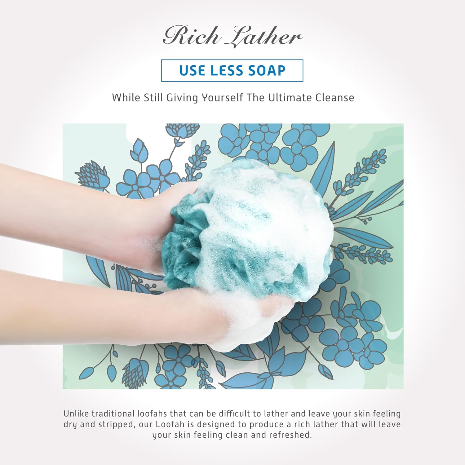 - RICH LATHER - Create a rich, foamy lather when used with your favorite soap or body wash. This loofah helps to whip up a thick and luxurious lather like never experienced before.