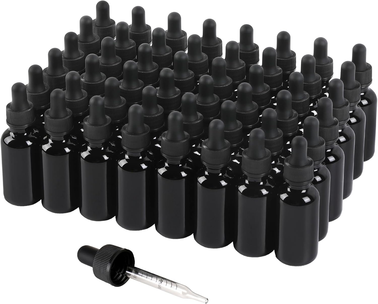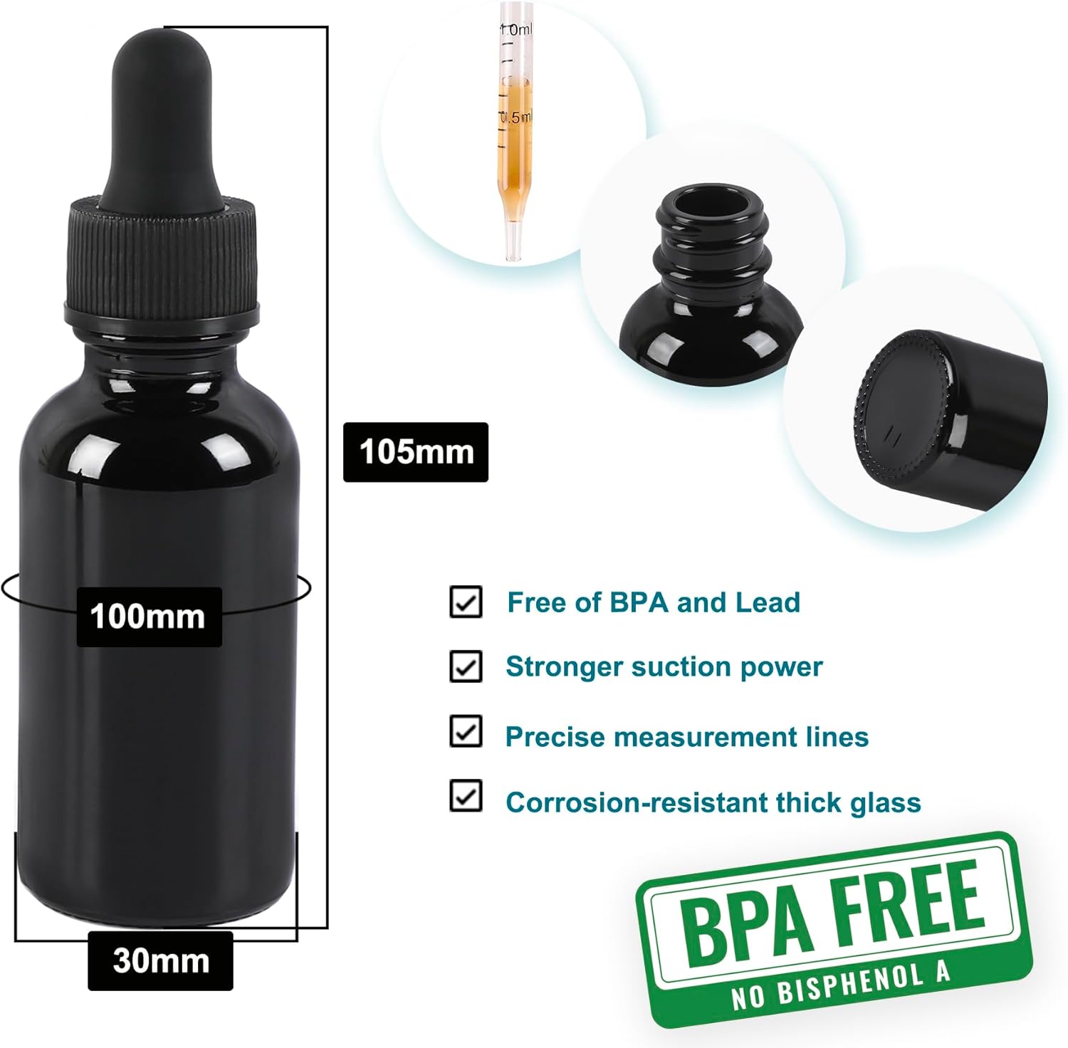 48 Pack,1oz Glass Dropper Bottle,Blakc Tincture Bottles with Dropper,Pretty Finish for All Kinds of Liquids,Oil Bottles for Hair- Stronger Suction ideal for Leakproof Travel