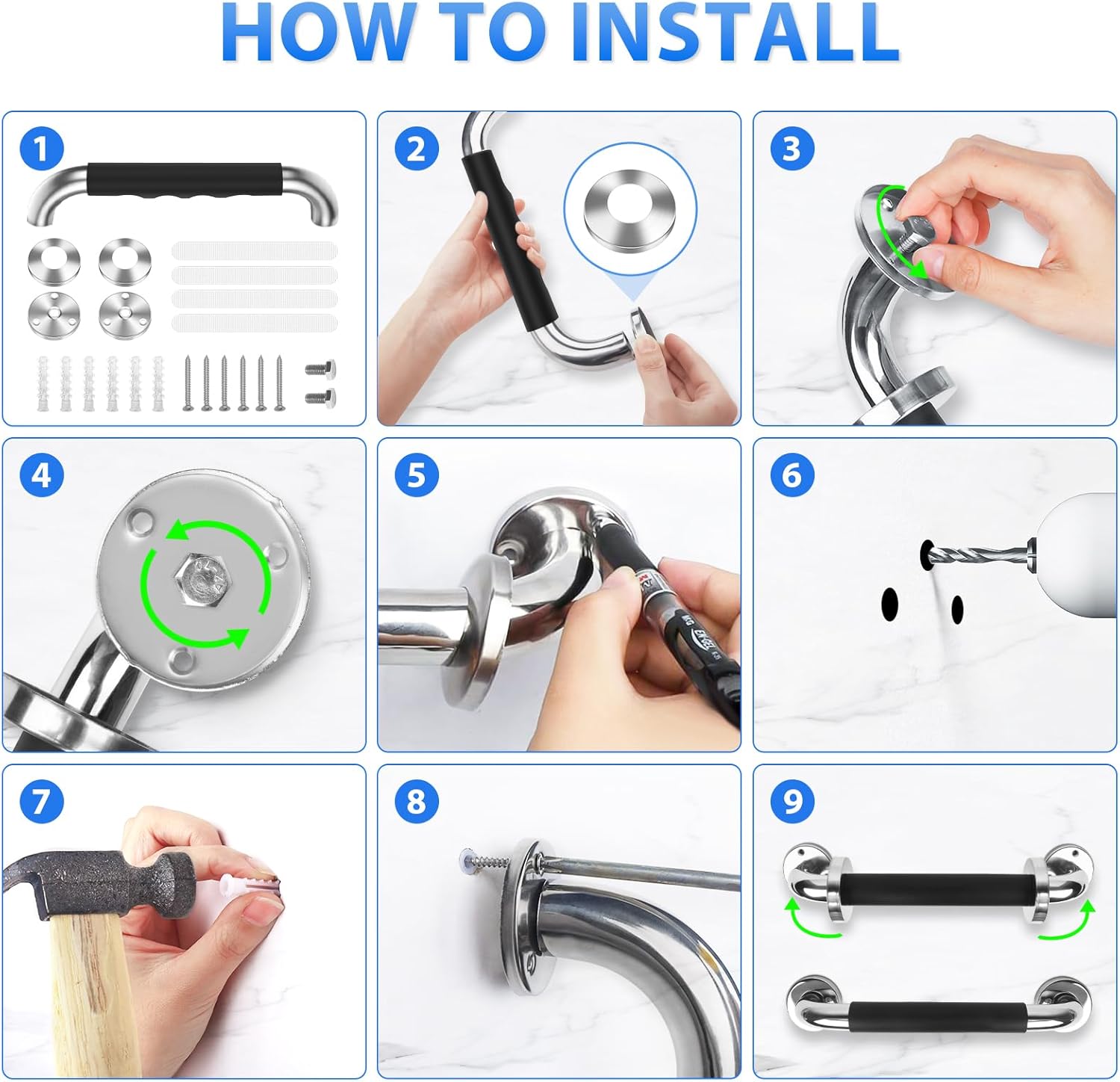 - EASY INSTALLATION : Grab bars for wall allows for easy, secure installation at any angle with our assembly instructions, concealed screw design to allows you to cover any unsightly screw holes to keep your bathtubs toilet and showers clean and beauty.