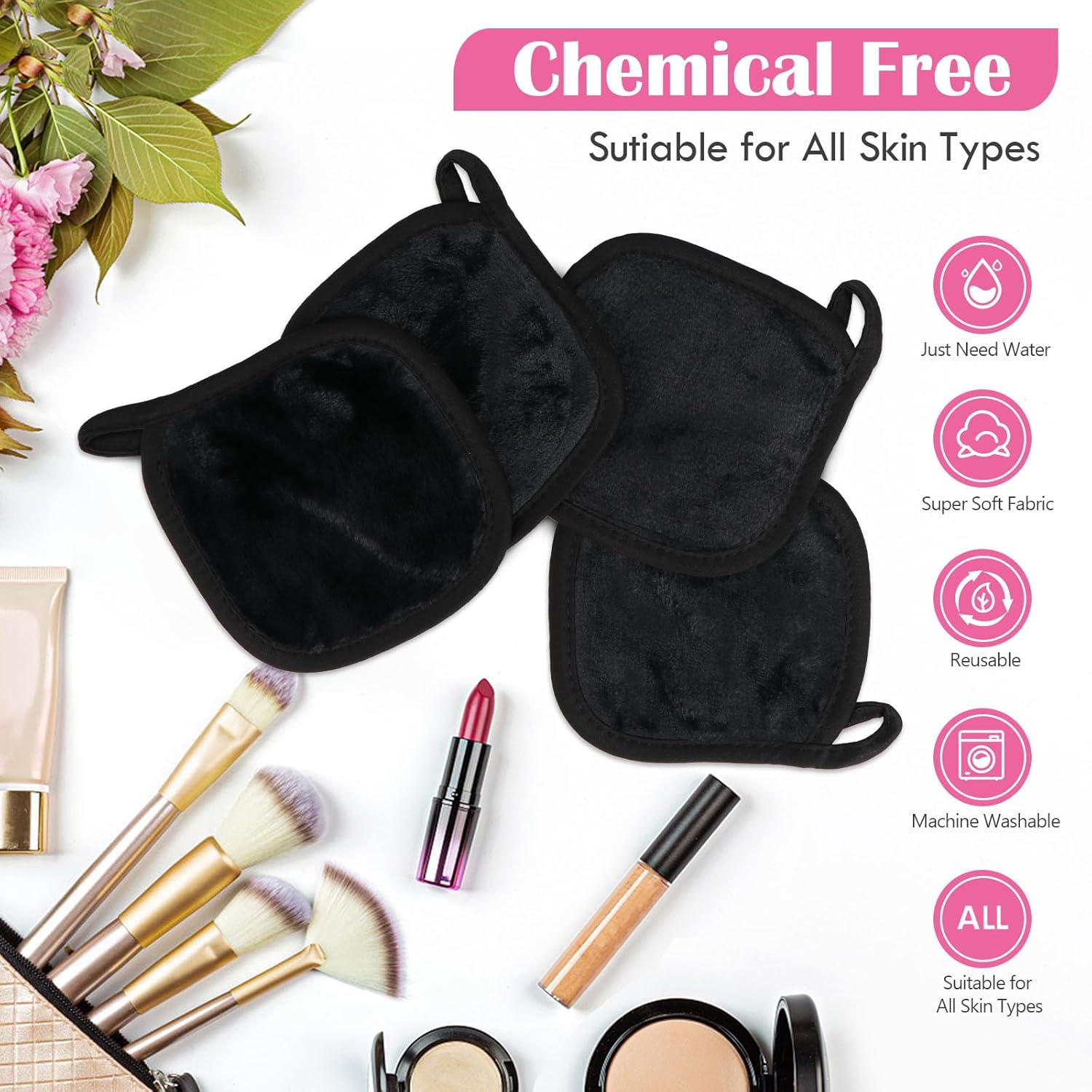 Orighty Makeup Remover Cloths 12 Pack, Makeup Removal Face Cleansing Cloth, Reusable Make-up Remover Pads Remove Instantly Dirt with Just Water, 5 x 5 in (Black)