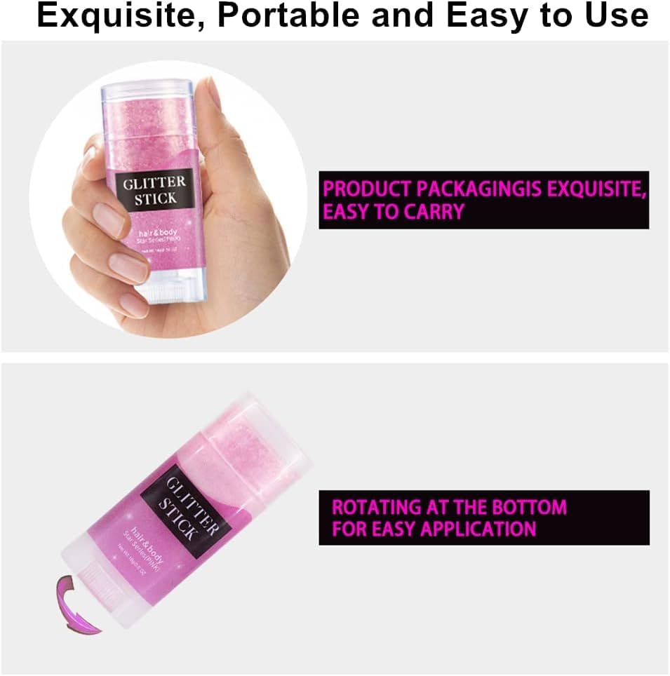- 【Glitter Gel for Body, Face & Hair】The mermaid body glitter stick with fine glitters and iridescent sequins, the color and shine vary in different angles, is great for glitter makeup, hair accessories, pride accessories. It delivers super vibrant and sparkling effect, looks amazing once it hits the light.
