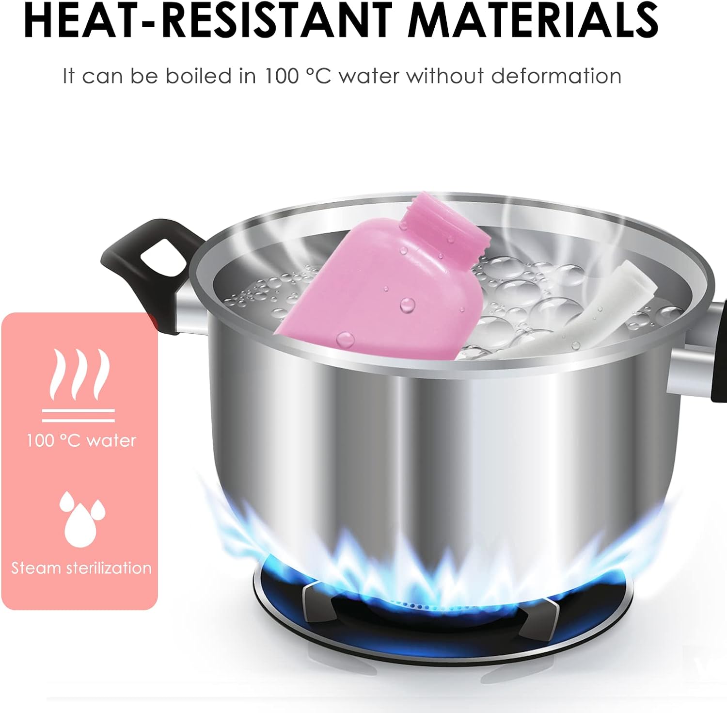 - HIGH TEMPERATURE RESISTANCE: The bottle body is made of TPE material, a soft, flexible material which has the properties and performance of rubber. It can be boiled in 100β (212β) water for disinfection without being deformed by heat. TPE meterial is greener and eco-friendly than EVA and can be processed like plastic and recyclable.