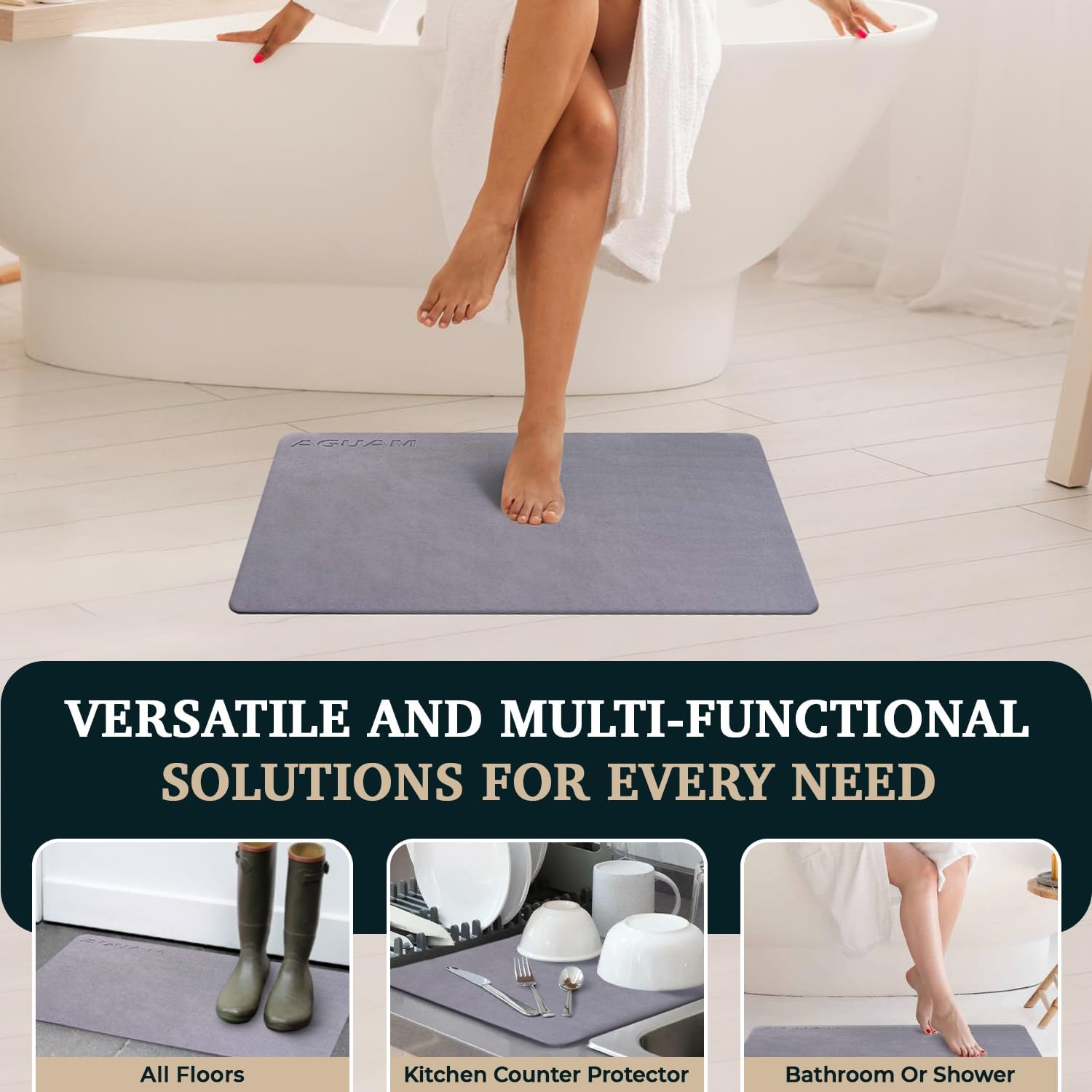 - Step with Confidence: If you are tired of messy, wet floors or simply want to step out of the shower without worrying about slipping, this stone shower mat is the right choice! Super absorbent, durable and stylish, this stone bathroom mat perfectly blends functionality and aesthetics to adorn your bathroom!