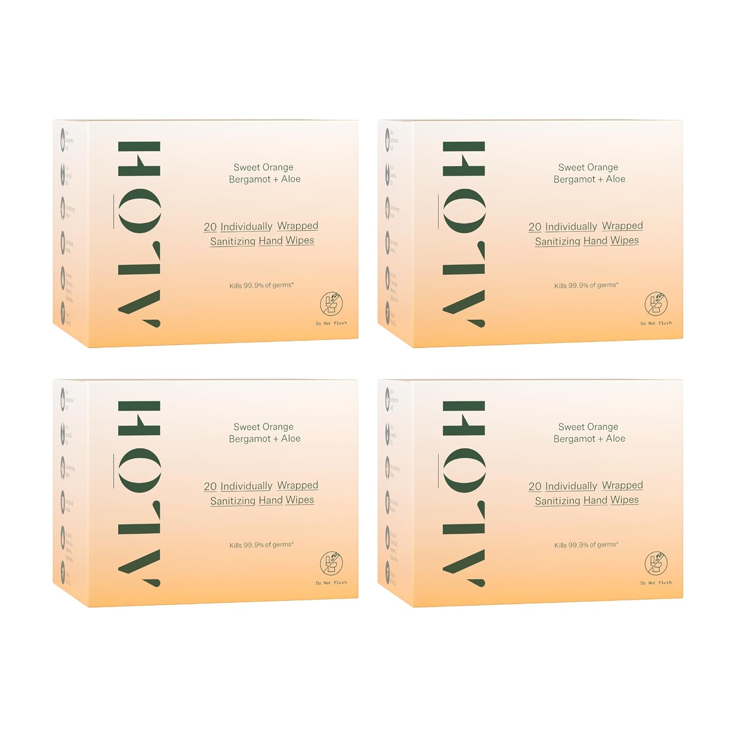 ALŌH Skin - Softening Sanitizing Hand Wipes – Sweet Orange Bergamot - 4 Boxes of 20 Individually Wrapped Wipes (80 wipes)