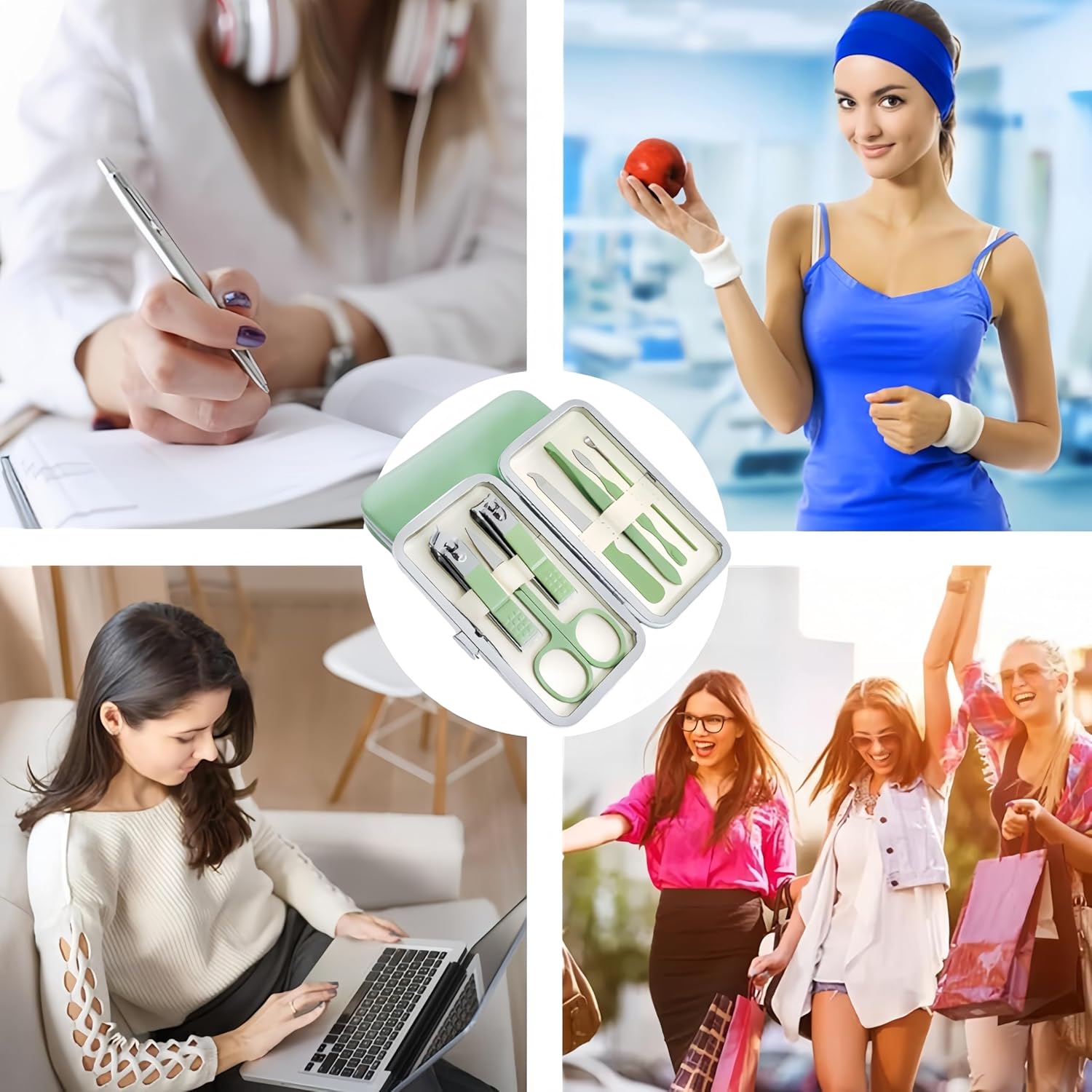 7pcs Manicure Set, Nail Clippers Kit, Stainless Steel Manicure Kit, Nail Clipping Tools Portable Travel Grooming Kit, The Best Gift with Luxurious Case (Green)