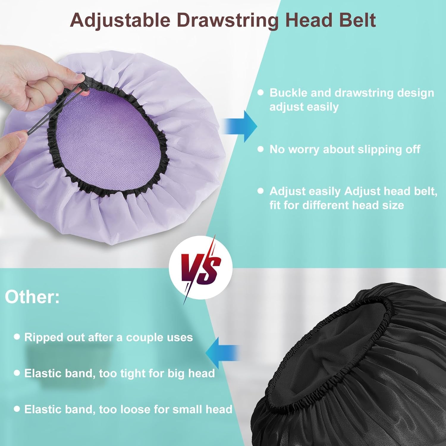 - [FLAWLESS WATERPROOF SEAL]: Experience 100% waterproof protection with our dual-layer EVA reusable shower cap, featuring fully sealed edges. Unlike fabric-edged caps that leak, our design ensures your hair stays perfectly dry during every shower and even for steamy baths.