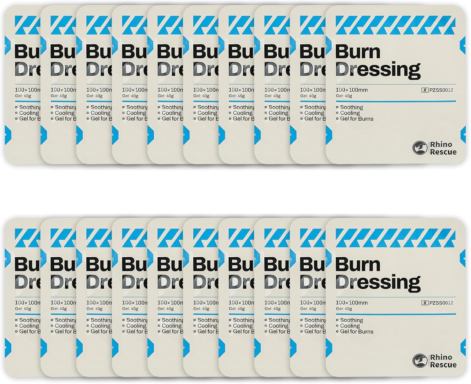 - 【Rapid Relief for Emergency】With RHINO RESCUE Burn Dressings, it takes no special training to give fast and effective emergency burn care for any type of burn injury. The sterile dressings are easy to carry, store and use. These dressings can also be applied directly to the burn without the need to pre-cool the burn before applying the dressing.