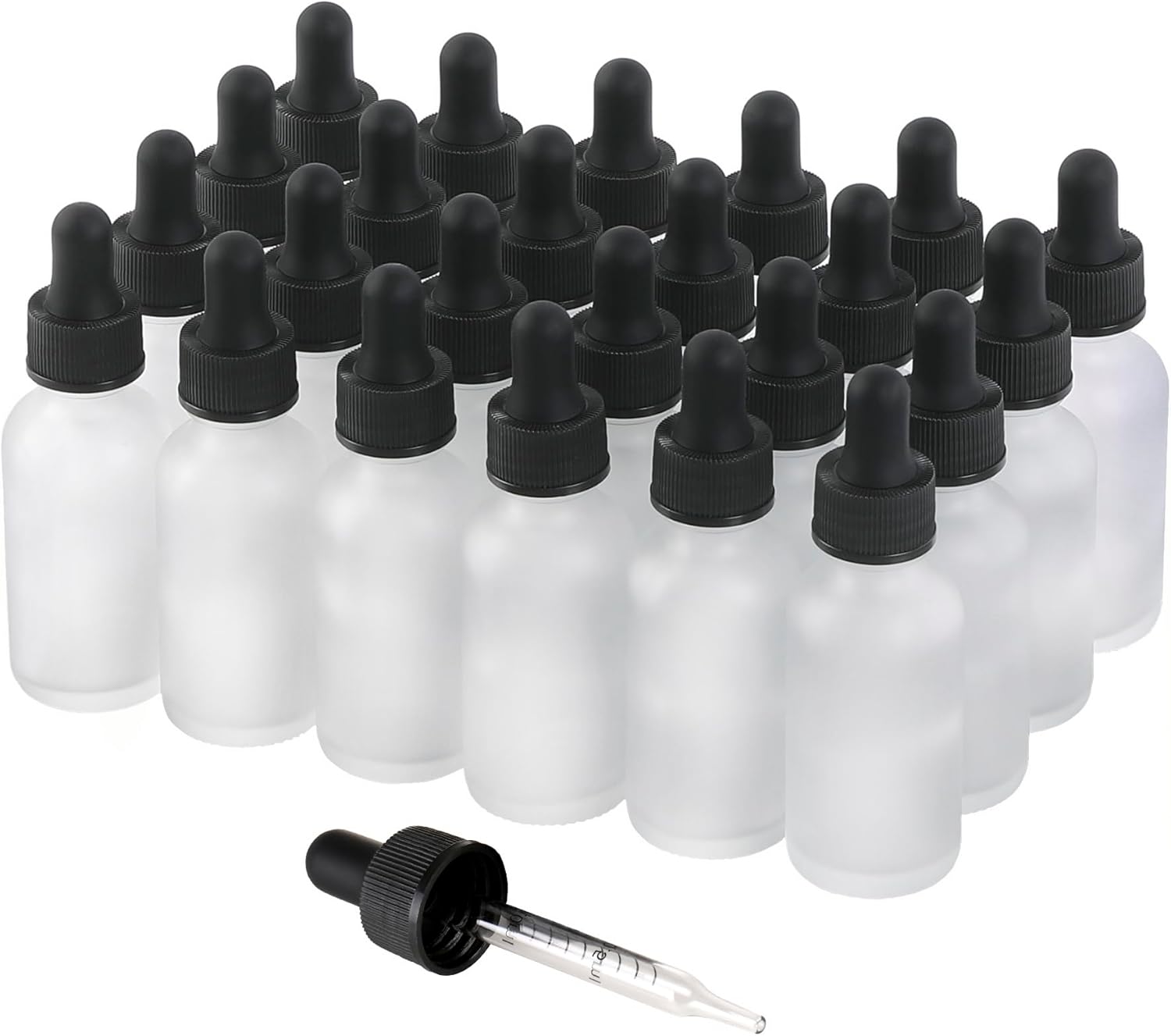 24 Pack,1oz Glass Dropper Bottle, Clear Frosted Tincture Bottles with Dropper, Pretty Finish for All Kinds of Liquids,Oil Bottles for Hair- Stronger Suction ideal for Leakproof Travel