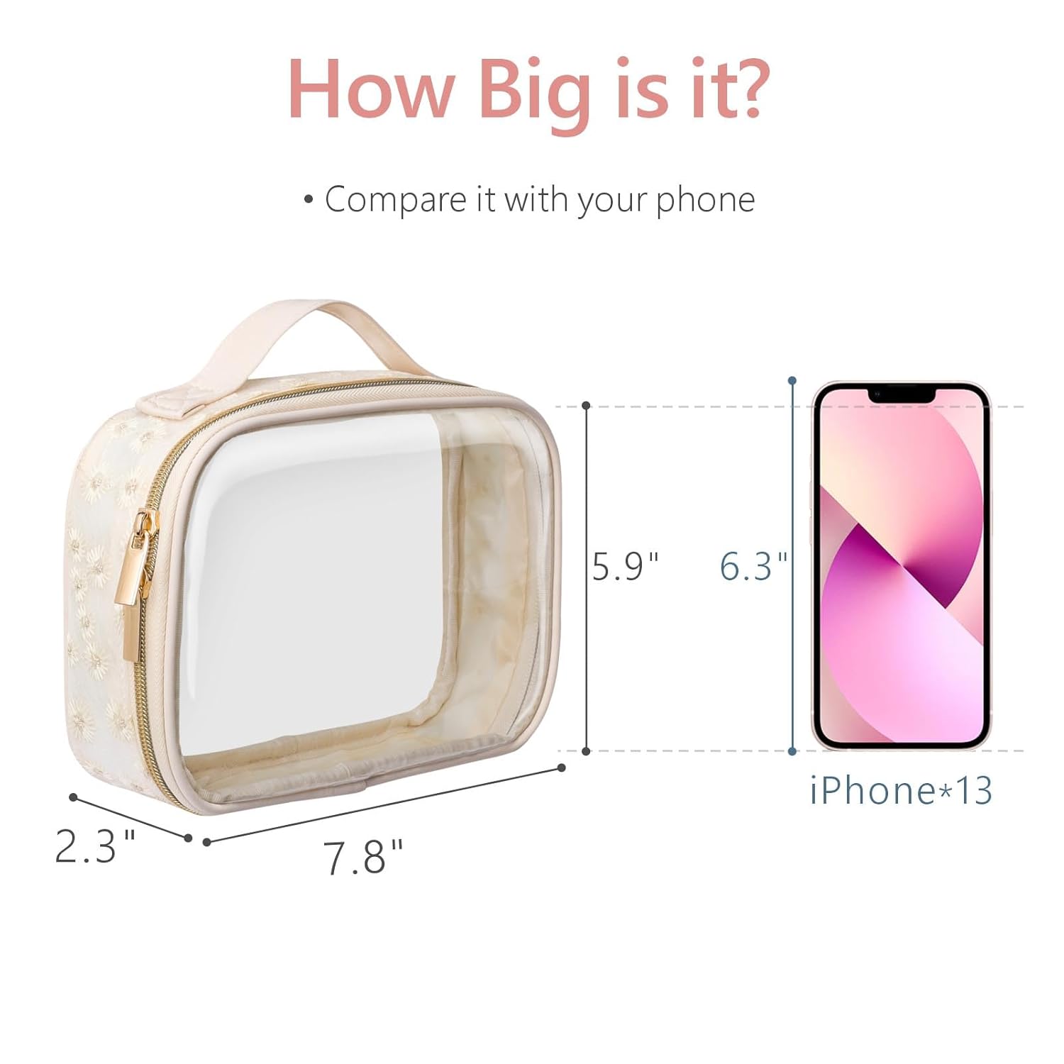 - TSA Approved, Meet Liquids Rule: The medium size clear makeup bag is 7.8 x 2.3 x 5.9 inch, it follows the TSA's 3-1-1 Liquid Rule published by TSA. You can quickly pass the airport security screening. High-quality metal zipper is smooth not get stuck