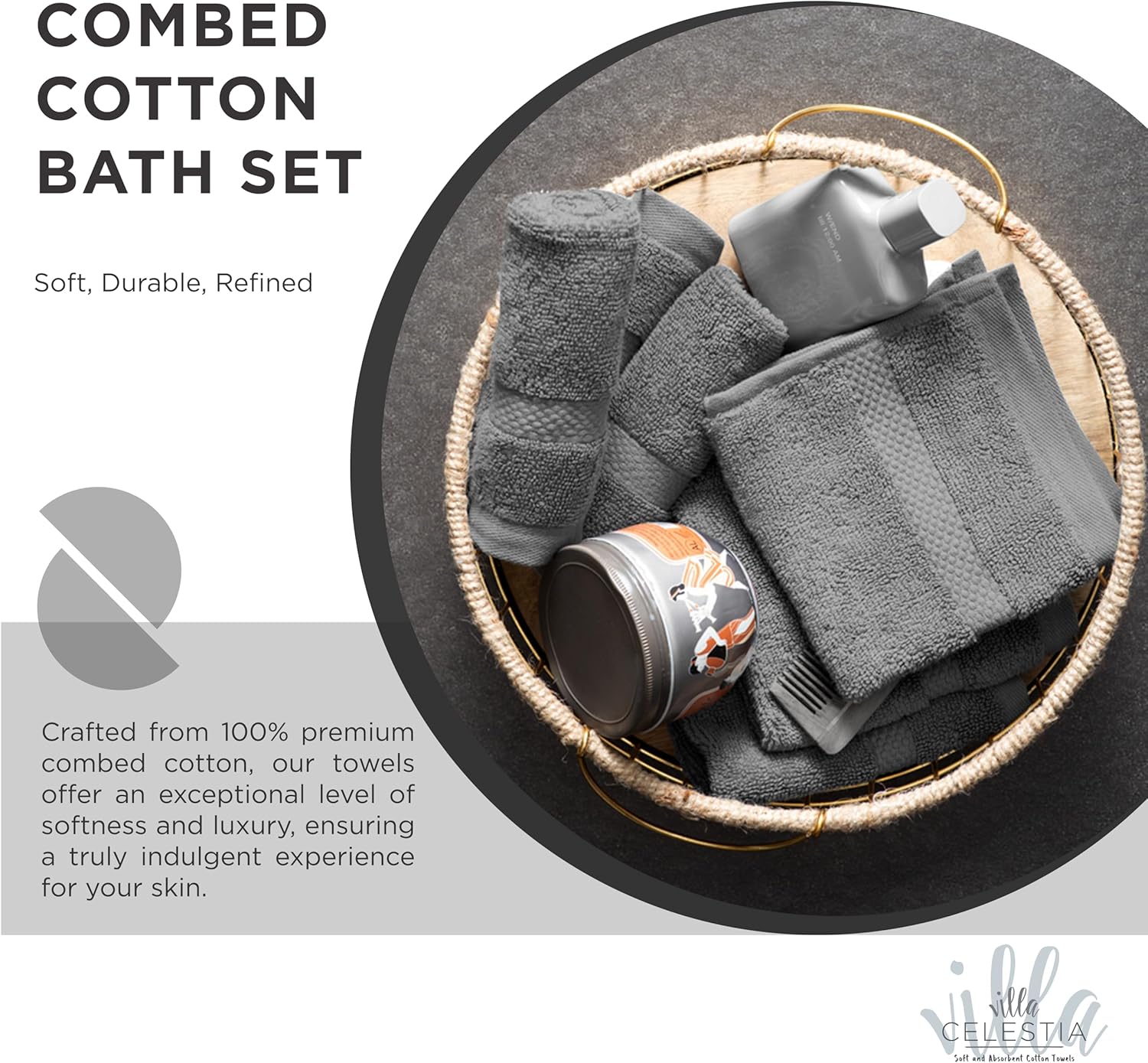 - VILLA CELESTIA LUXURIOUS TOWEL SET (PACK OF 3): Uplift your mood and bathing experience with the super soft and luxurious touch of our Villa Celestia Bath Towels Set. Bundled in a 3 pack design, our towel sets for bathroom consists of 1 Bath Towels (27β X 54β), 1 Hand Towels (16β X 28β), and 1 Washcloths (12β X 12β), giving you the complete package of comfort, indulgence, and delight.