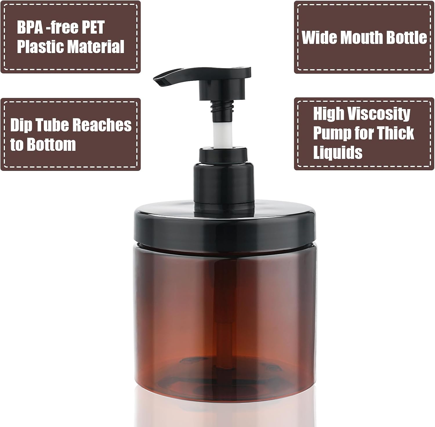 - 【Premium Material】Pump bottle dispenser made of PET plastic, Lightweight and sturdy material reduces your travel burden. Size:3.54*3.35inch, 500ml/16.9oz. Please kindly note that this product doesn’t work for thick liquid such as thick cream, thick lotion, etc. Please also note that the straw in the bottle needs to be cut according to your own needs. Any problems, we will do our best to meet your satisfaction.
