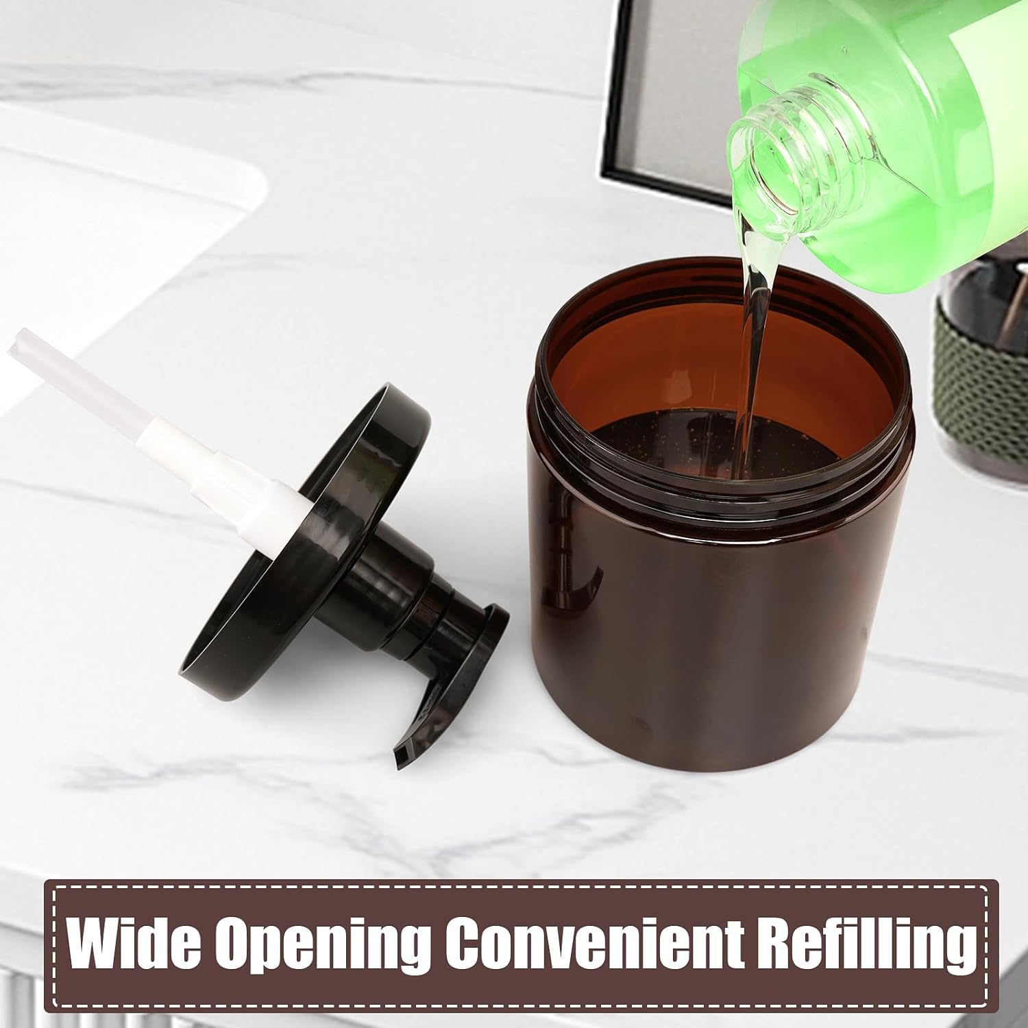 - 【Widespread Use】Reusable pump bottles for shampoo and conditioner dispensers, perfect kitchen bathroom household accessories for dispensing all everyday essentials including shampoo, lotion, conditioner, hair conditioner, gel, oil, masque, body wash, dish soap, mouthwash, etc.