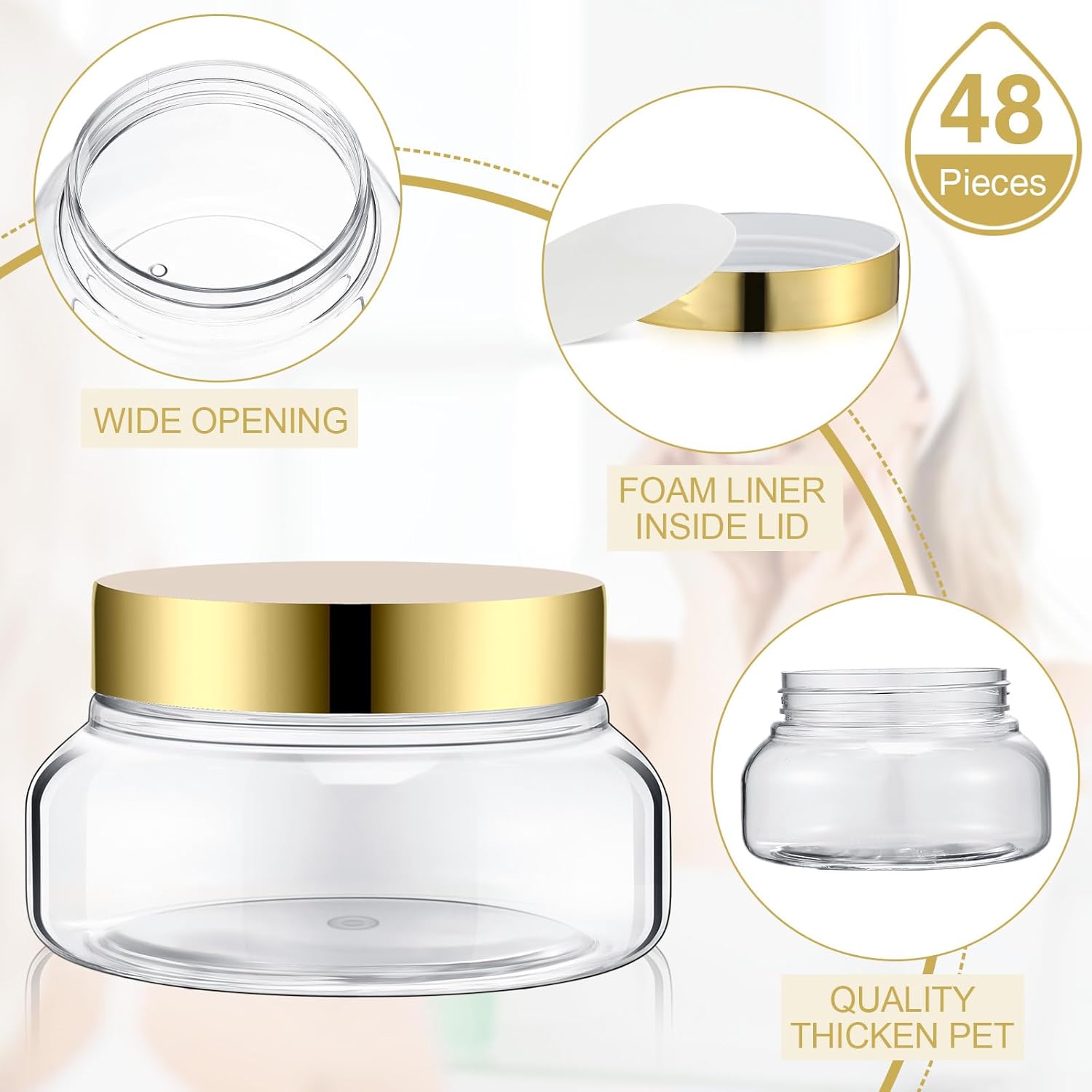 Mumufy Clear Plastic Jars with Lids Round Plastic Containers Empty Travel Containers for Creams Refillable Cosmetic Jars for Lotions Body Scrub Body Butter(48 Pcs,5 oz)