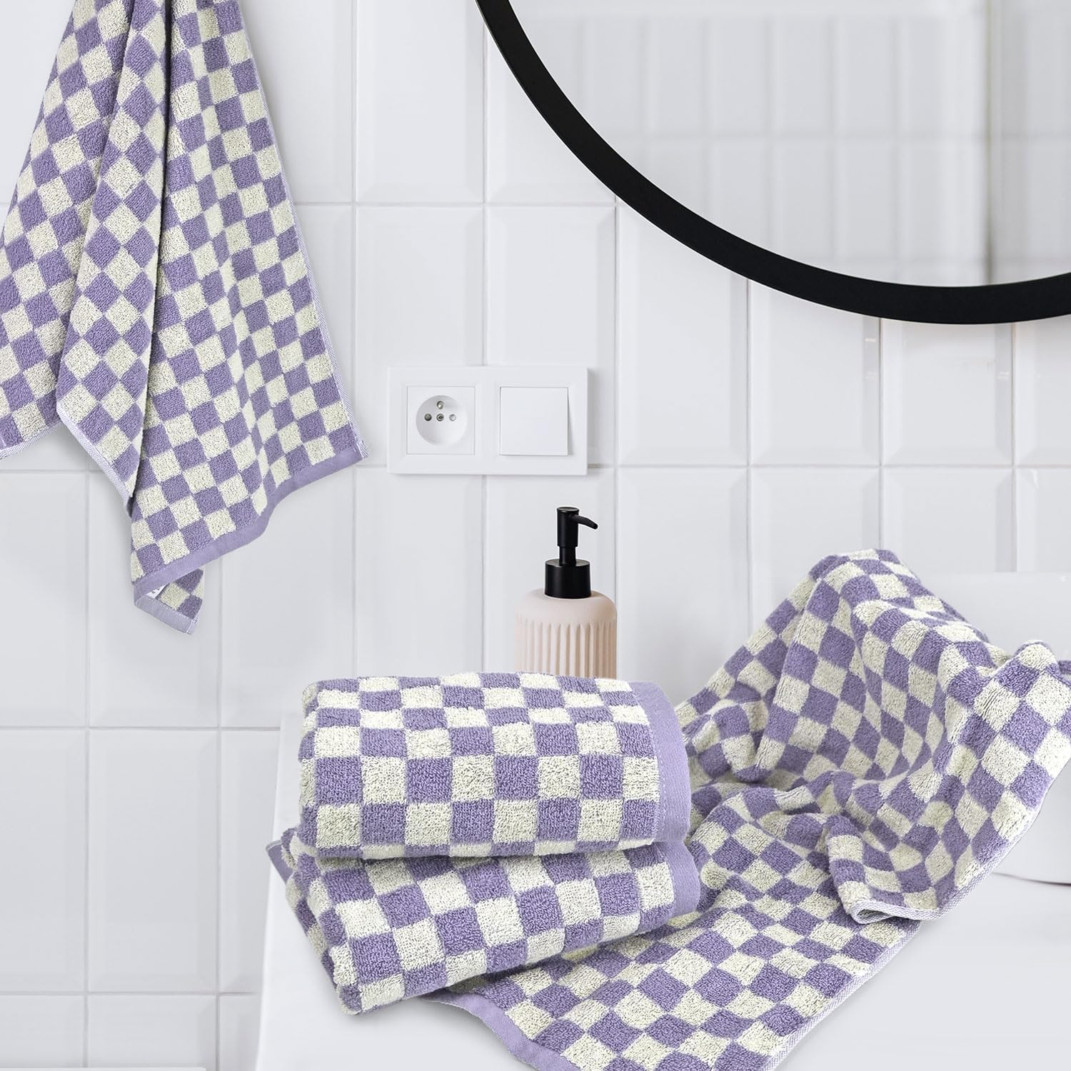 Hand Towel for Bathroom Guest Room Home - 100% Cotton Face Towel Set Lilac Checkered, Extra Soft, Absorbent 4-Piece for Daily Use