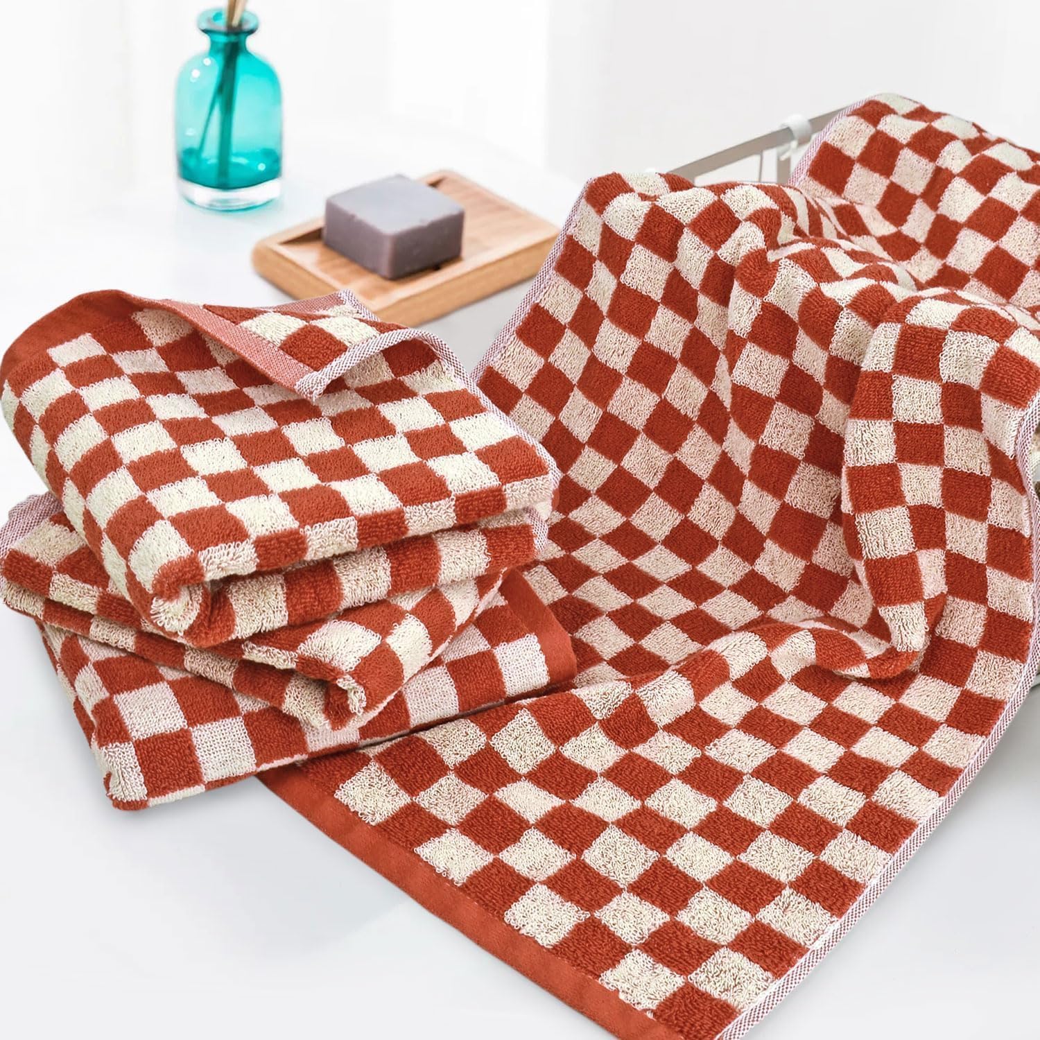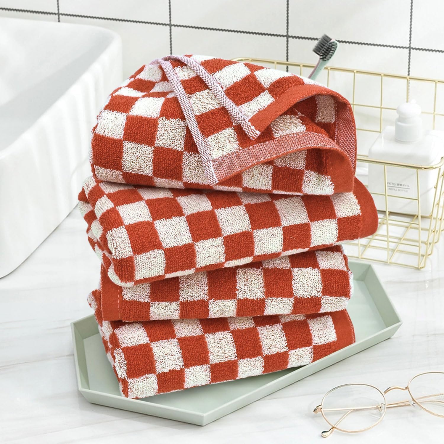 Jacquotha Checkered Hand Towels (13x29 Inches) - Kitchen Hand Towels Pack of 4, Absorbent Cotton Rags for Bathroom Face Gym Pool Swim