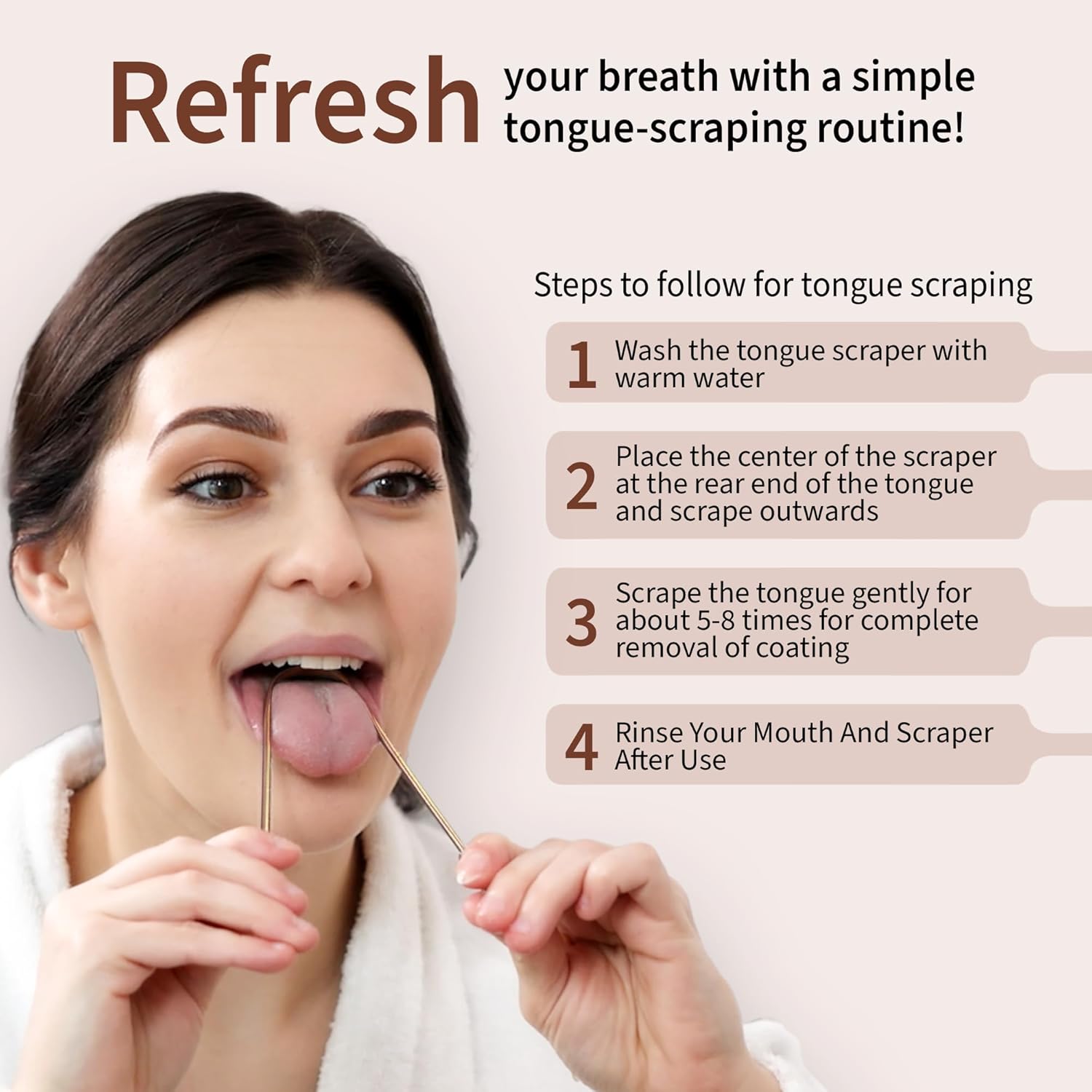 - GET RID OF GUNK & BAD BREATH: Whether you are trying to clear out the white, coated layer on your tongue or maintain better oral hygiene, MasterMedi tongue scraper for adults has got you covered. Not just that, immediate benefits of scraping your tongue with this self care product include fresh breath for improved confidence and better overall health