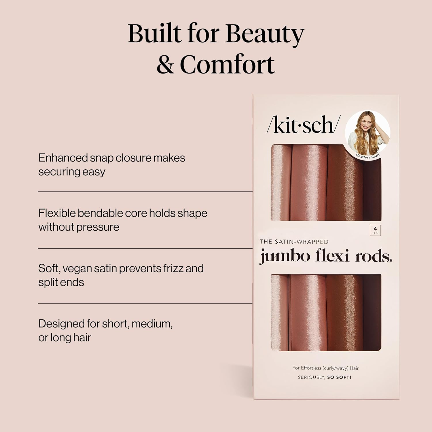Kitsch Satin Hair Curlers, Heatless Curling Rod - Jumbo Flexi Rod, Heatless Hair Curler - Hair Curlers to Sleep In - No Heat Overnight Curls - For All Hair Types and Texture - 4pcs Rosewood