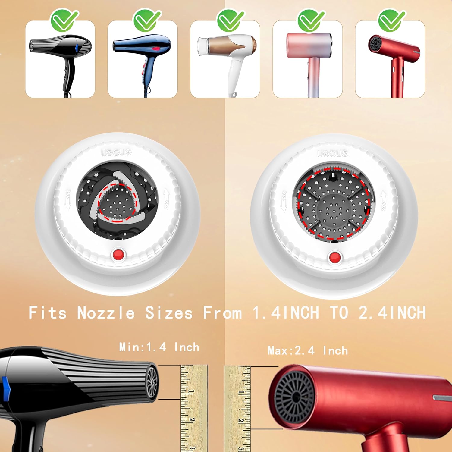 - The Ligolig Diffuser hair dryer is thoughtfully designed with lock button, can be adjusted and fit 99% hair dryers on the market for hair dryer with nozzle diameter of 1.4 inch - 2.6 inch. This hair diffuser compatibilityamplify the natural beauty of your curls, giving them definition and bounce. Whether you have wavy, curly, or coiled hair, our diffuser attachment for hair dryer are the ultimate tool to achieve your desired look.