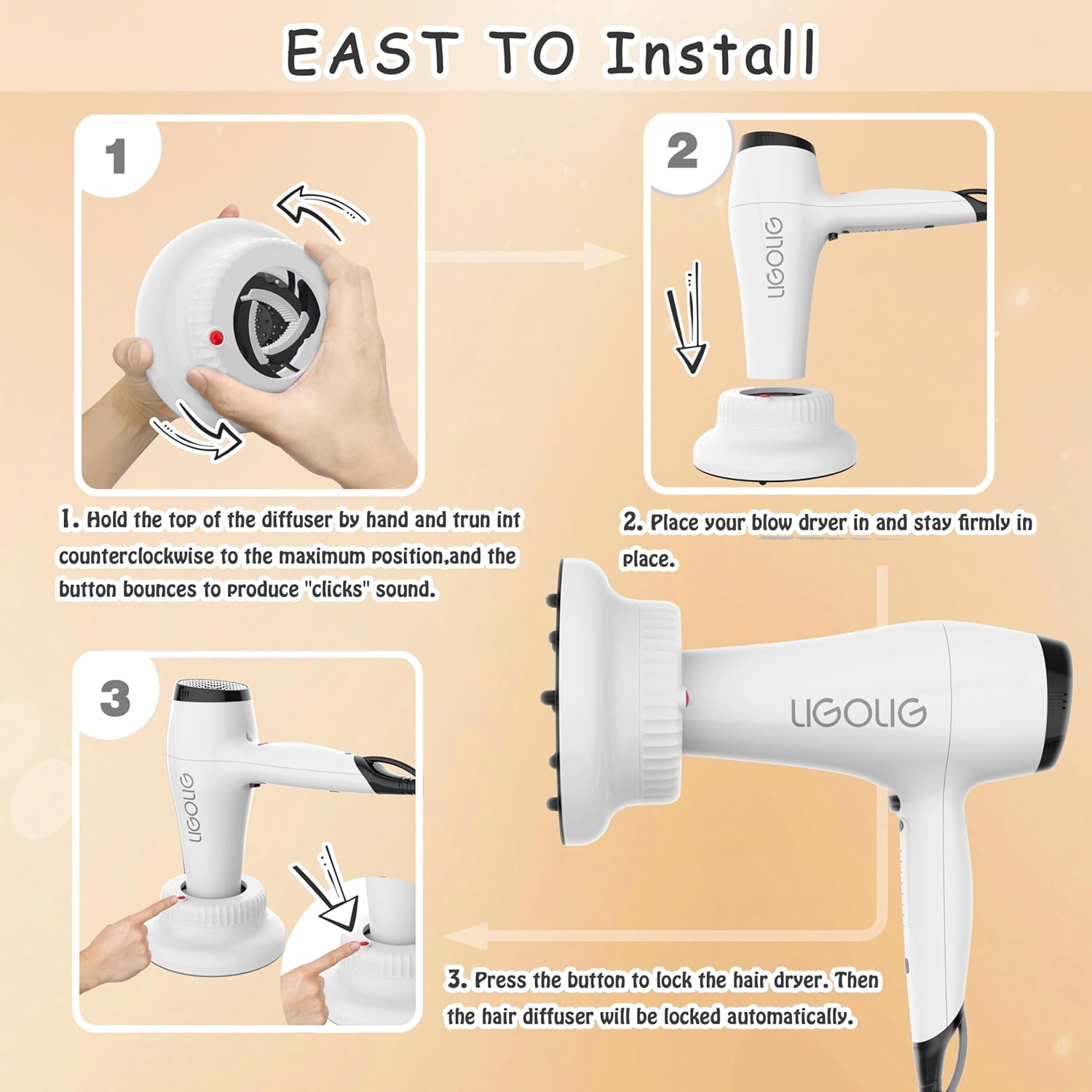 - Ligolig diffuser hair dryer effectively reduces frizz, adds volume, defines wavy curls, and enhances the overall texture of your hair. only Twist the top of hair dryer diffuser attachment counterclockwise to enlarge the opening, slip dryer nozzle into hair diffuser and release.Unlock the full potential of your locks with our game-changing hair diffuser. Show off your gorgeous, bouncy curls with utmost confidence and flair.