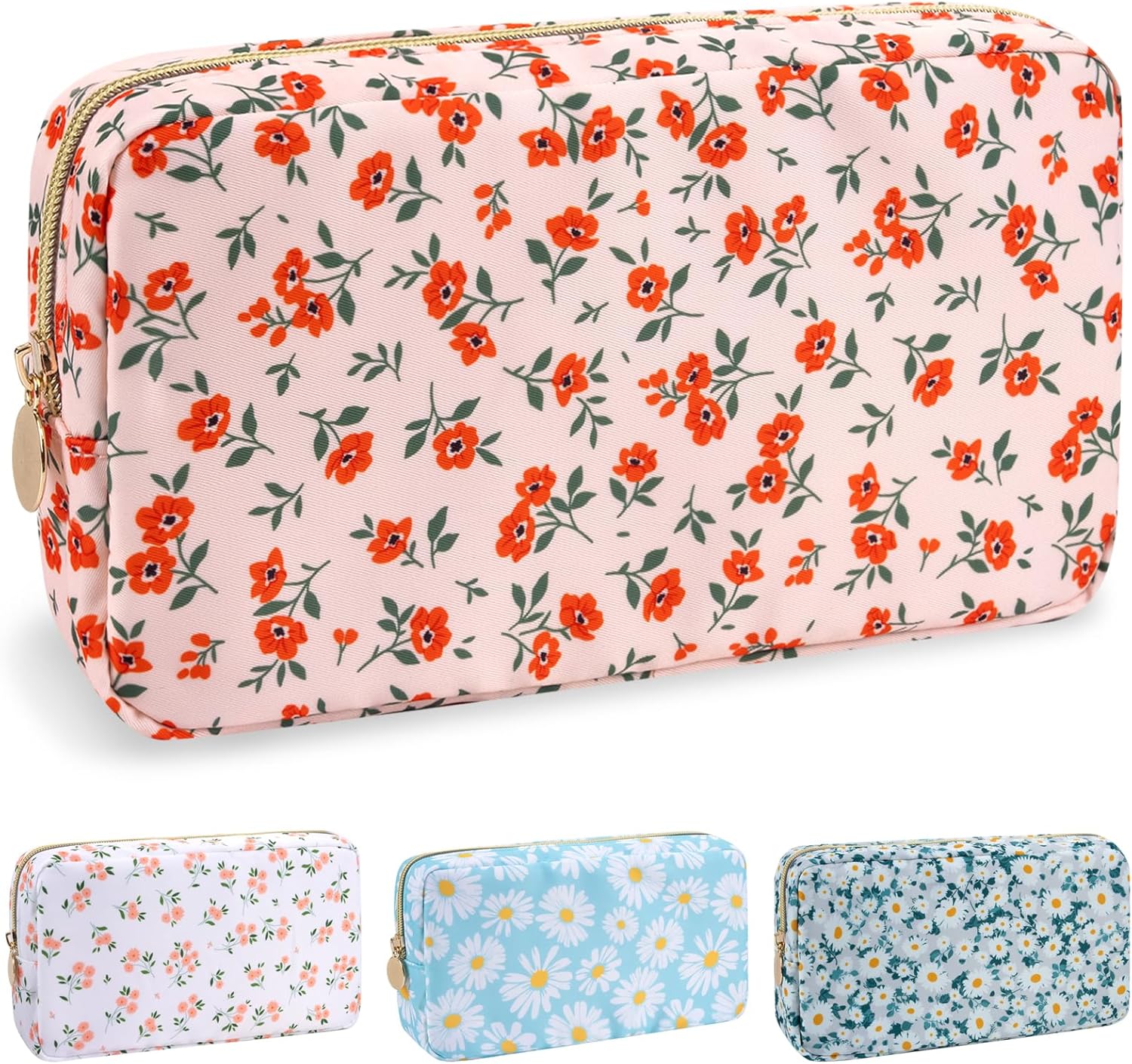 - ❤【Multiple Sizes & Colors】Large, Small, Mini, or Slim, we have it all! Cosmetic bags are available in many colors: Blue-Daisy, Green-Daisy, White-Flower, Pink-Flower and other colors for you to choose. Nylon makeup bag for purse can be used for travel, outdoors and organization, it can be used as a coin pouch, purse bag, travel pouch, clutch, makeup organizer and more.