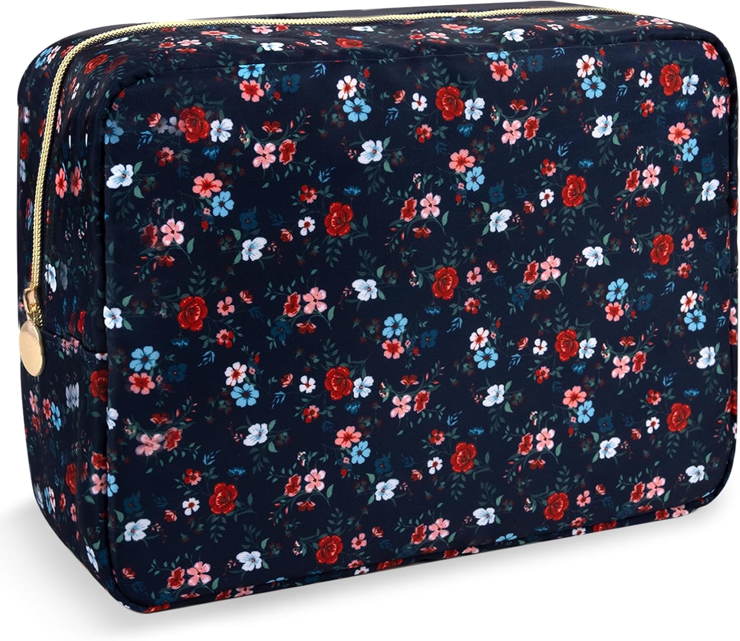 - ❤【Premium Materials】Large floral makeup bag is made of high-quality nylon waterproof material and durable gold zipper, which does not fade, has no peculiar smell, and is durable. Stylish appearance, easy to wipe clean, dustproof and waterproof. The makeup pouch interior is covered with thick sponge to protect your belongings at all times.