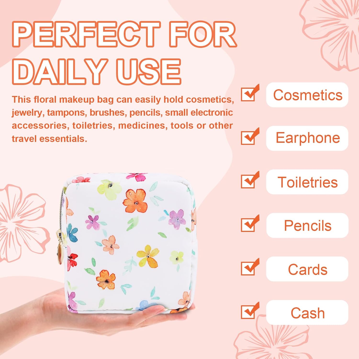 • 【Superior Quality】The floral makeup bag is made of lightweight and durable high quality nylon. It is waterproof and easy to clean, helping to protect your cosmetics and toiletries from water spill accidents.