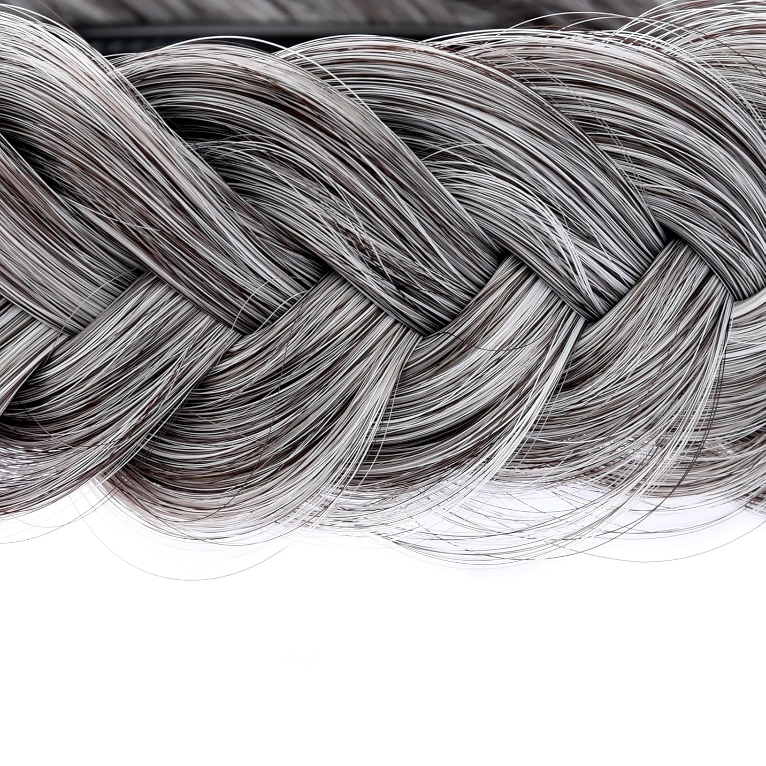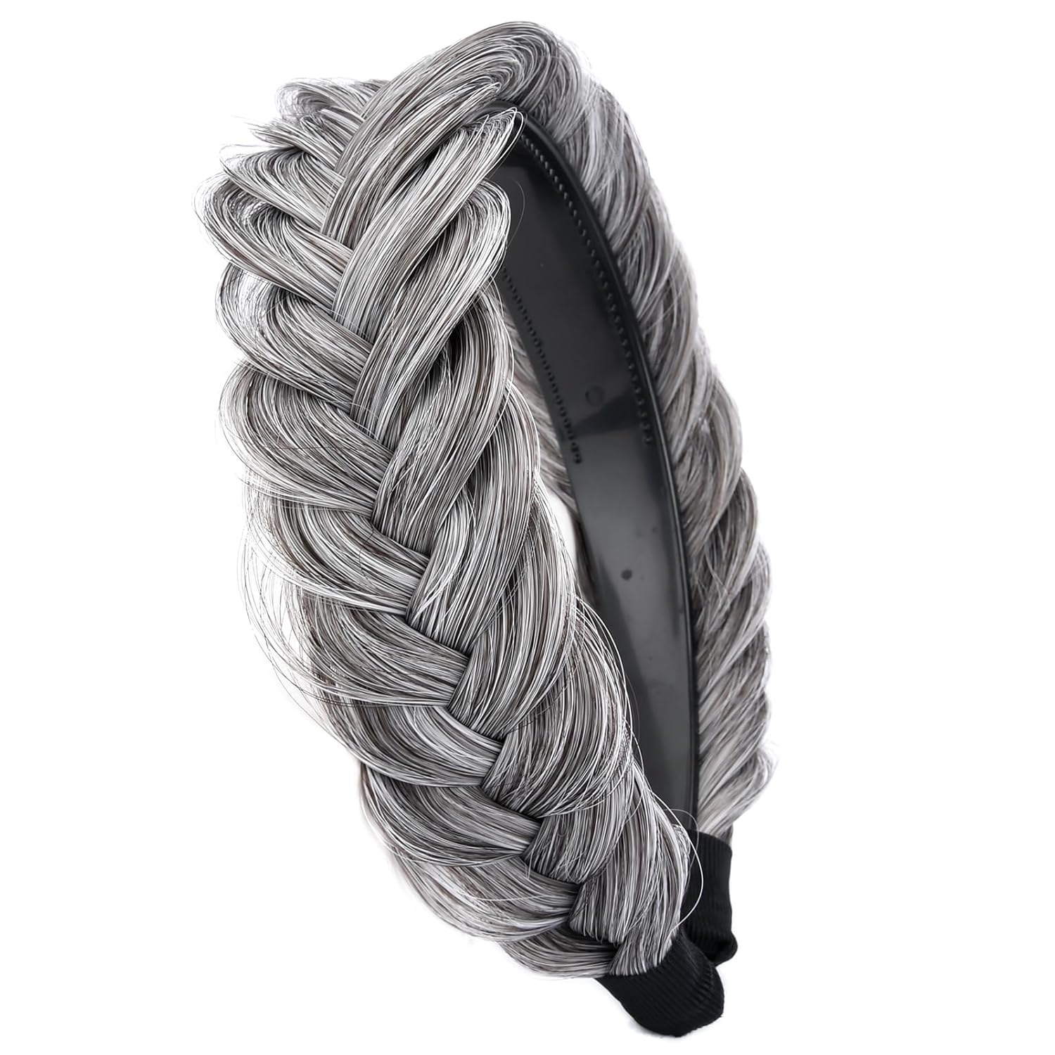 DIGUAN Wide Messy Braided Headband With Teeth Synthetic Hair Plaited Headband High Elasticity Braids Chunky Fishtail Braided Hair Band Hairpiece for Girls Women Beauty Accessory (Salt Pepper)
