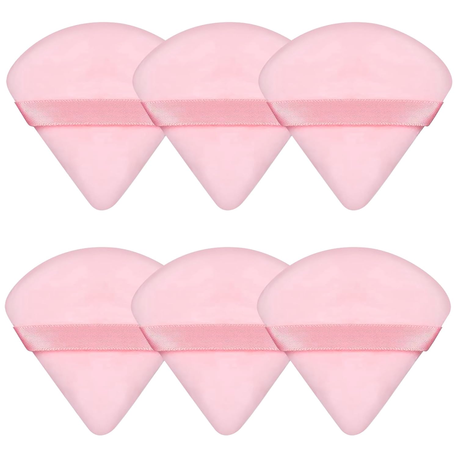 6 Pieces Pink Powder Puff Face Soft Triangle for Loose and Body Powder, Velour Makeup Sponge Set Setting Powder Puff Makeup Tools