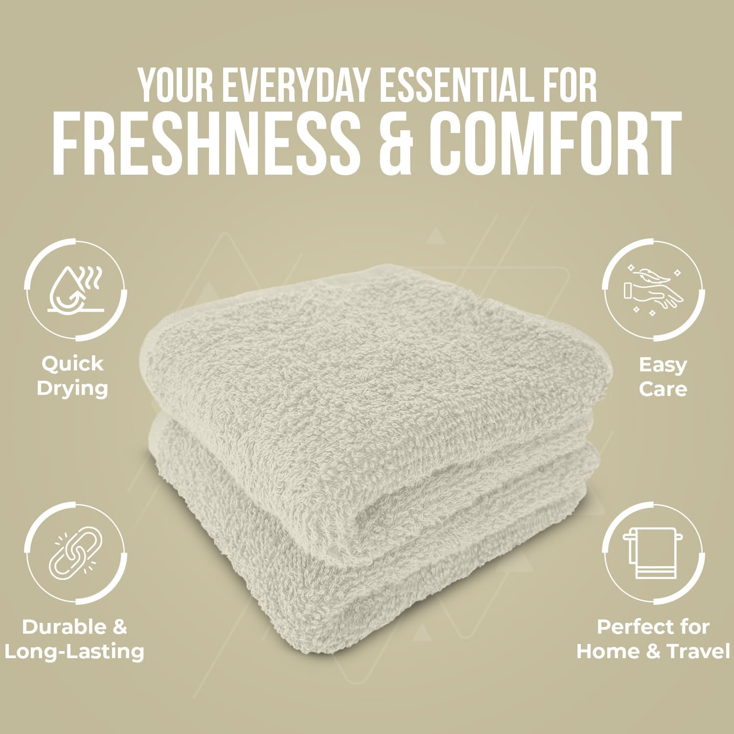 DAN RIVER 100% Cotton Wash Cloths 12 Pack [12x12] Soft & Absorbent Body wash Cloths, Gym, Hotels & Spa Perfect for Everyday Use Fingertip Towels, Ivory