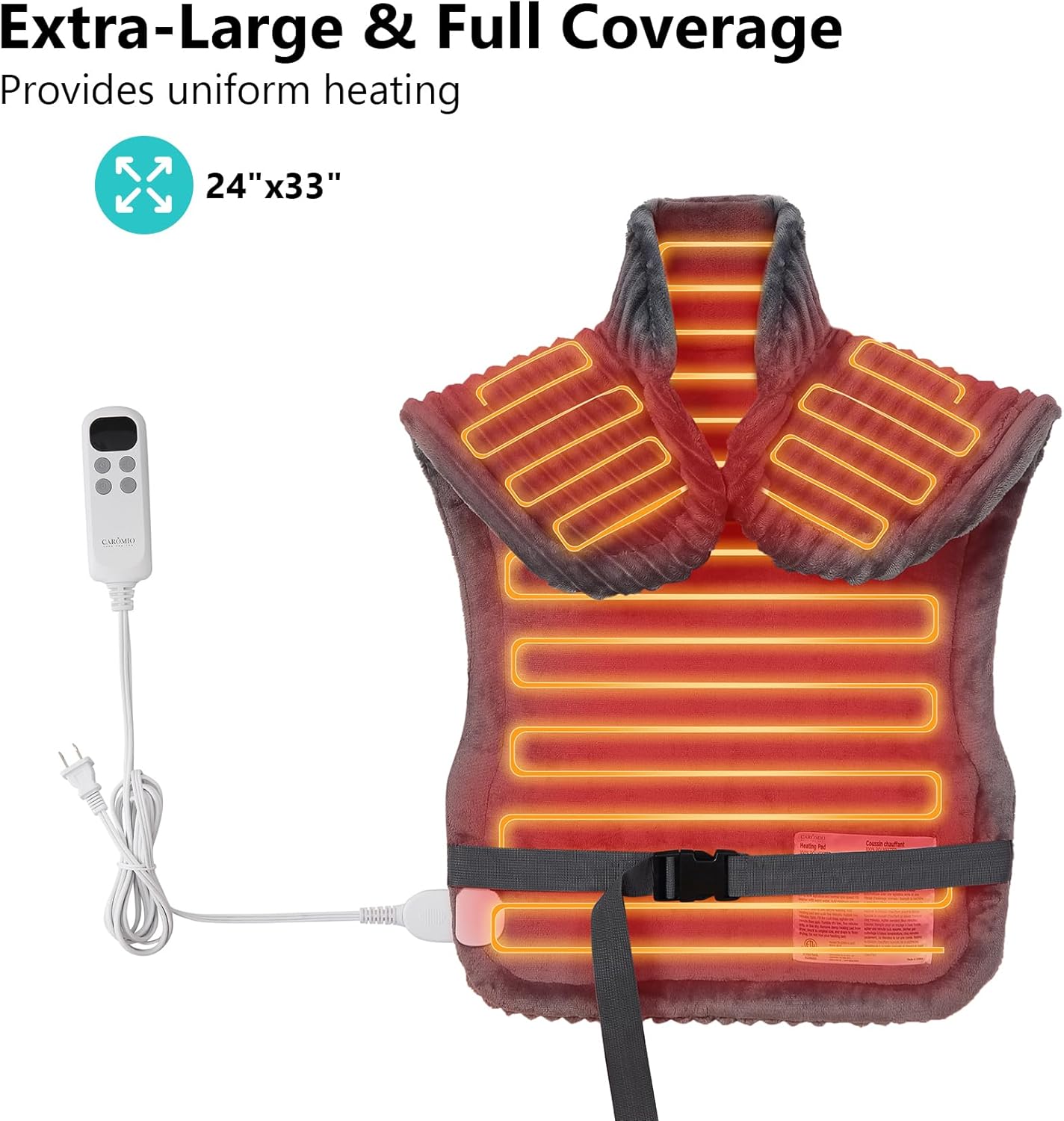 CAROMIO Heating Pad for Back Pain Relief, Neck and Shoulders Electric Heating Pads Large Size, Full Body Back Heat Pad with Auto Shut Off, Fast Heating and 6 Heat Settings (Grey, 33"x24")