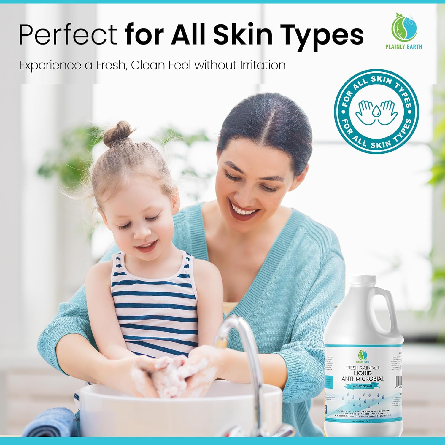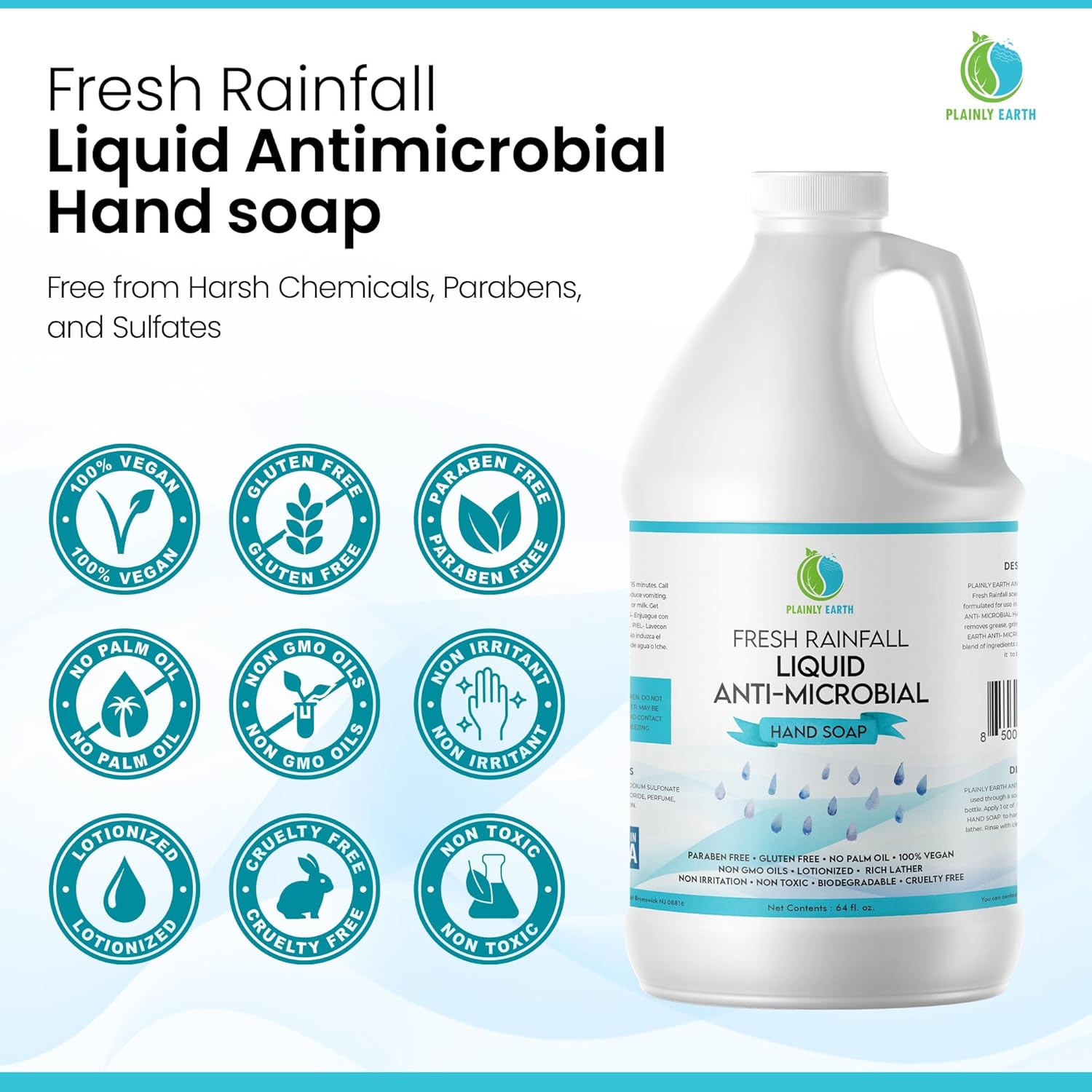 AntiMicrobial Hand Soap, 64 oz Bulk Refill - Antibacterial Hand Soap, Gentle, Scented Moisturizing Hand Soap for Kitchen and Bathroom - Fresh Rainfall