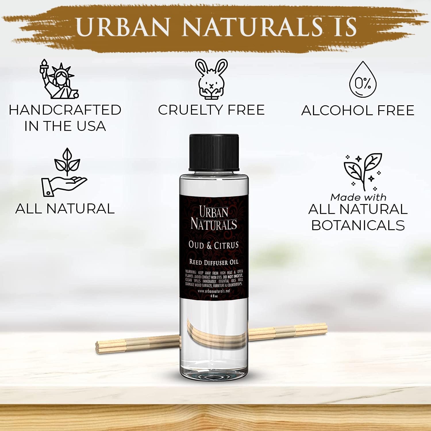 Urban Naturals Reed Diffuser Oil Refill, Oud & Citrus Diffuser Oils with Oud, Cedar, Citrus, Amber, 4 oz + Free Reed Sticks, Made in The USA