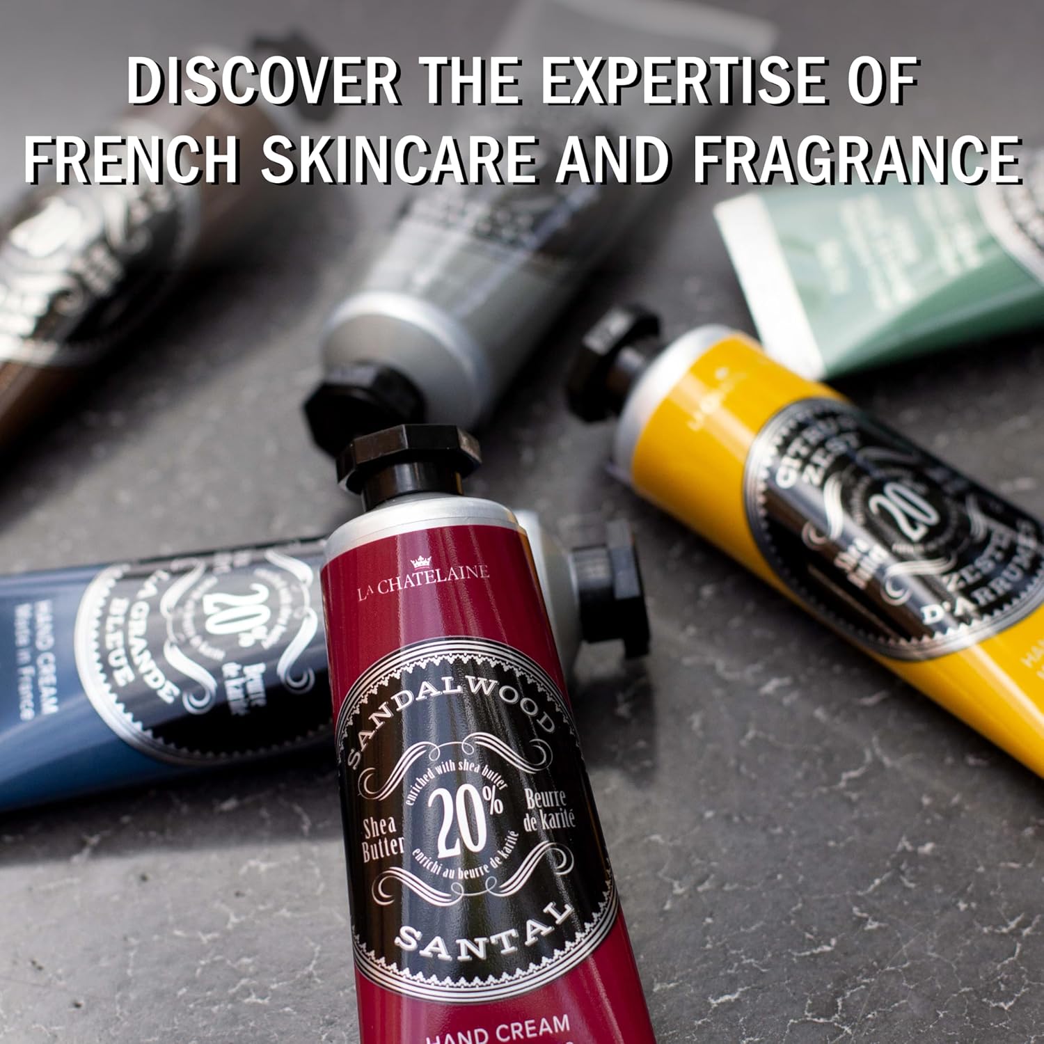 La Chatelaine 20% Shea Butter Hand Cream Travel Size, Men, Unisex, Organic Argan Oil, Moisturizing, Nourishing, Extra-Rich Hand Lotion, Made in France, Paraben Free, 1 oz / 30ml (Sandalwood)