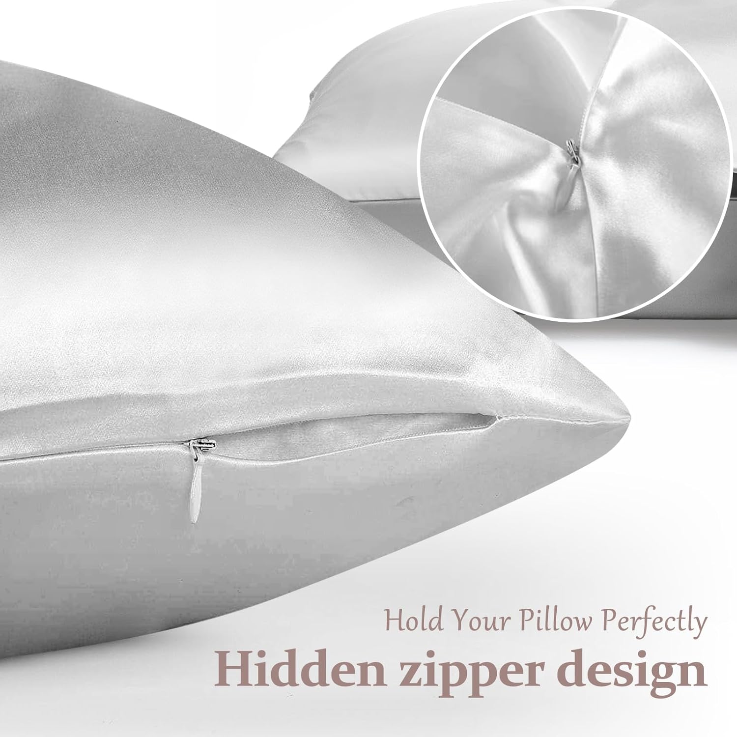 2 Pack 100% Pure Silk Pillowcase for Hair and Skin, Both Sides Mulberry Silk Pillowcases with Hidden Zipper, Cooling Pillowcase 19 Momme, 600 Thread Silk Pillow Cases King Size, Gray