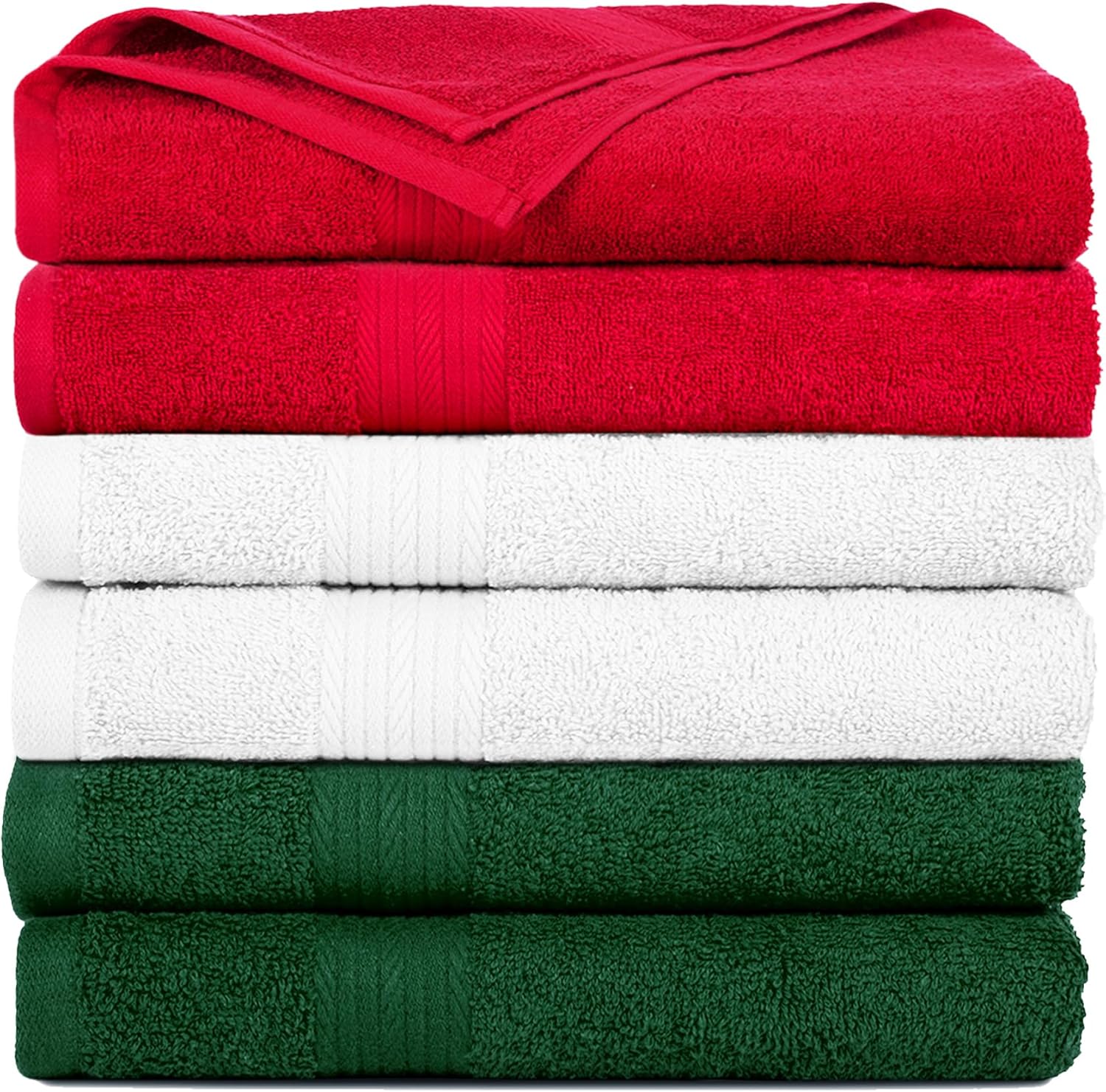 Ample Decor Hand Towel for Bathroom 100% Cotton 18 X 28 Inch 600 GSM Soft - 6 pcs White, Red & Green
